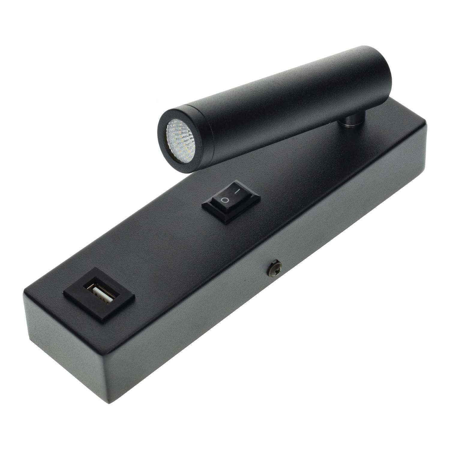 Aplique de pared en aluminio con acabado en color negro con un punto de luz de lectura orientable de 3W de potencia y una dispersión lumínica de 25°. Dispone además de un puerto de carga USB de 2A que permite cargar cualquier dispositivo electrónico. Es ideal para su instalación como luz de lectura para dormitorio, aplique cabecero para cama, en salones, escritorios, hoteles, apartamentos etc. La luz no es regulable. Cuenta con una alta eficacia al consumir 3W mediante el LED COB que integra, logrando proporcionar un flujo luminoso de 270 lumens. La iluminación que aporta representa un consumo por valor de 3kWh/1000h, lo que supone una reducción de la cantidad de energía facturada y de emisiones de gases contaminantes a la atmósfera. Este aplique está disponible en una temperatura de color: neutra (4000°K). Está diseñado con las medidas de 190 x 50 x 70 mm. Su instalación debe realizarse en lugares interiores al poseer un grado de protección IP20 (protección contra partículas sólidas de tamaño superior a 12 mm y no es resistente al agua). Soporta un voltaje de entrada de 100-240V y una frecuencia de servicio de 50/60Hz. Además de ser un producto que tiene más de 30.000 horas de vida, dispone de una garantía de 3 años. Cuenta también con el certificado CE, que acredita que se cumple con los requisitos de la UE respecto a compatibilidad electromagnética y normativa de baja tensión. Con este certificado se declara la conformidad de dicho producto con todos los requisitos legales exigidos, y asegura la validez del producto para ser vendido en todo el Espacio Económico Europeo.