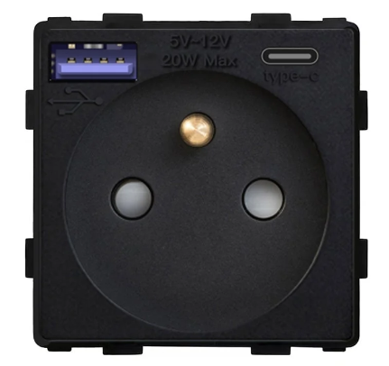 Base de enchufe empotrable tipo E (francés), disponible en dos colores diferentes: blanco o negro. Tiene dos tomas USB-A y USB-C adicionales que permiten cargar dispositivos electrónicos con una intensidad total de 2.4A. Ideal para combinar con nuestros marcos de la serie cristal. Es una solución moderna y práctica para cualquier hogar u oficina. Con un diseño que combina un enchufe tipo E estándar de 16A y dos puertos USB, permite cargar dispositivos electrónicos directamente sin necesidad de adaptadores adicionales. Ideal para mejorar la funcionalidad y ahorrar espacio en lugares donde la tecnología está en uso constante. Este enchufe es perfecto para cargar teléfonos móviles, tablets y otros dispositivos electrónicos mientras sigues utilizando el enchufe convencional para electrodomésticos. Fabricado con materiales de alta calidad, garantiza seguridad y durabilidad en cualquier tipo de instalación. Mecanismo no compatible con los marcos de la serie PC. Compatible con cajas de mecanismos universales. Carga máxima: 16A Está diseñado en policarbonato con las medidas 50 x 50 x 40 mm. Soporta un voltaje de entrada de 200-240V y una frecuencia de servicio de 50/60 Hz. Debido a su grado de protección IP20 es ideal para instalar en zonas interiores (protección contra partículas sólidas de tamaño superior a 12mm y no es resistente al agua). Dispone de una garantía de 3 años. Cuenta también con el certificado CE, que acredita que se cumple con los requisitos de la UE respecto a compatibilidad electromagnética y normativa de baja tensión. Con este certificado se declara la conformidad de dicho producto con todos los requisitos legales exigidos, y asegura la validez del producto para ser vendido en todo el Espacio Económico Europeo.