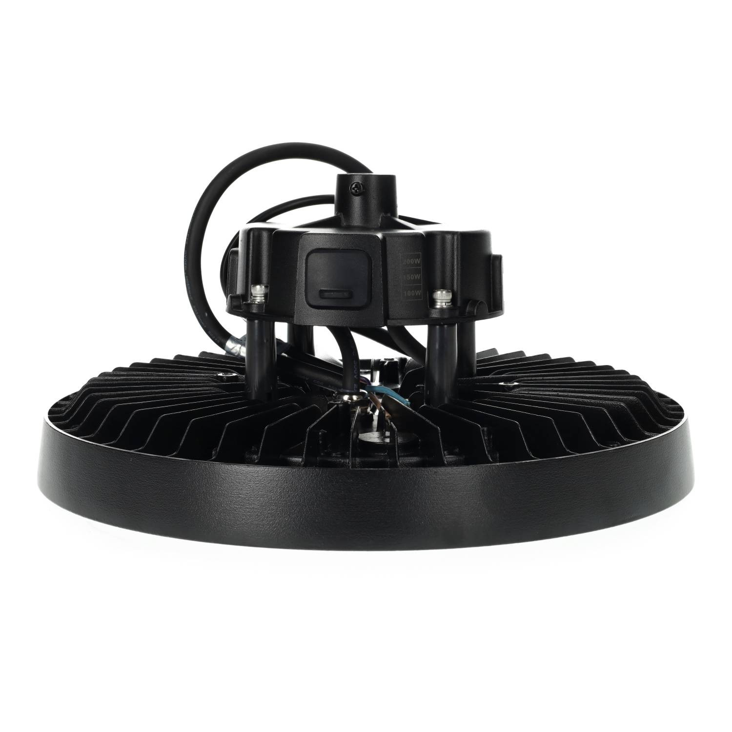 Campana LED UFO Potencia Ajustable > 100W, 150W, 200W | Iluminación industrial | Masterled, marca europea de luces LED Diseñada para entornos exigentes como fábricas, almacenes, talleres, parkings y supermercados. Con un rendimiento excepcional de 150 lúmenes por vatio y un ángulo de apertura de 90º, esta luminaria ofrece una iluminación brillante, uniforme y de alta eficiencia. Equipada con un driver de la prestigiosa marca SOSEN, esta campana garantiza una larga vida útil y un funcionamiento estable. Su diseño compacto incluye un disipador de aluminio de gran capacidad, asegurando una excelente disipación del calor y durabilidad. Con un grado de protección IP65, esta campana es resistente al agua y al polvo, lo que la hace ideal tanto para uso en interiores como en exteriores. Además, su vida útil de 50,000 horas y certificaciones internacionales como CE y RoHS aseguran calidad, seguridad y sostenibilidad. Una de las características más destacadas de esta campana es su potencia ajustable (100W, 150W, 200W) mediante un selector de 3 posiciones, permitiendo adaptarse perfectamente a las necesidades de cada proyecto. Además, es compatible con reguladores 0-10V para ajustar la intensidad de la luz según sea necesario. ✅ Modos de Funcionamiento Voltaje de Entrada: Compatible con redes eléctricas estándar: 200/240V AC. Frecuencia: 50 Hz, adecuado para diferentes regiones. Potencia Ajustable: Selector de 3 posiciones (100W, 150W, 200W). Regulación de Intensidad: Compatible con reguladores 0-10V. Temperatura de Color Disponible: Luz blanca fría (6000K), ideal para áreas funcionales y modernas. Ángulo de Apertura: 90º, asegurando una cobertura amplia y homogénea. Factor de Potencia: 0.95, indicando alta eficiencia energética. ✅ Material y Dimensiones Dimensiones: Ø 300 x 145 mm, diseño compacto y robusto. Material: Fabricado en aluminio, garantizando una excelente disipación del calor y durabilidad. Grado de Protección: IP65, resistente a condiciones moderadas de uso interior. Instalación: Diseñada para montaje en superficie, fácil de instalar en techos o paredes. ✅ Garantía y Vida Útil Certificaciones: Cumple con las normativas CE y RoHS, asegurando su seguridad y compatibilidad ecológica. Horas de Vida Útil: 50,000 horas, diseñada para durar y ofrecer un rendimiento constante durante años. Garantía: Ofrecemos una garantía de 5 años, respaldando la calidad y fiabilidad del producto. Rango de Temperatura de Trabajo: Funciona entre -20°C y +40°C, ideal para entornos extremos. Dudas sobre las campanas LED UFO industriales ❓ ¿Qué es una campana LED UFO? Una campana LED UFO es un tipo de luminaria industrial con forma circular y compacta, similar a un platillo volador. Está diseñada para proporcionar una iluminación potente y eficiente en grandes áreas, como naves industriales, almacenes y estacionamientos. ❓ ¿Por qué elegir una campana LED con potencia ajustable? Las campanas LED con potencia ajustable son ideales para proyectos donde las necesidades de iluminación pueden variar. Esta campana permite seleccionar entre 100W, 150W y 200W, adaptándose perfectamente a diferentes tamaños de área y niveles de luminosidad requeridos. ❓ ¿Qué ángulo de apertura tiene esta campana LED? Esta campana LED tiene un ángulo de apertura de 90º, lo que asegura una cobertura amplia y homogénea, ideal para iluminar áreas medianas o grandes con precisión. ❓ ¿Es regulable esta campana LED? Sí, esta campana LED es regulable. Incluye un selector de 3 posiciones (100W, 150W, 200W) y es compatible con reguladores 0-10V para ajustar la intensidad de la luz según sea necesario. ❓ ¿Dónde puedo usar esta campana LED? Esta campana LED es ideal para: Naves industriales. Almacenes y centros logísticos. Talleres y áreas de producción. Parkings y estacionamientos cubiertos. Supermercados y salas de exposiciones. Gimnasios y espacios deportivos. Peajes y áreas de servicio. ❓ ¿Qué significa el grado de protección IP65? El grado de protección IP65 indica que la campana es completamente resistente al polvo y a chorros de agua, lo que la hace ideal para uso en exteriores o en entornos industriales con condiciones adversas. ❓ ¿Cuál es la vida útil de esta campana LED? La vida útil de esta campana LED es de 50,000 horas, lo que equivale a varios años de funcionamiento continuo bajo condiciones normales. Esto reduce los costos de mantenimiento y reemplazo. ❓ ¿Qué certificaciones tiene este producto? Este producto cuenta con las certificaciones CE y RoHS, asegurando su cumplimiento con los estándares de seguridad, compatibilidad electromagnética y sostenibilidad ambiental exigidos en la Unión Europea.