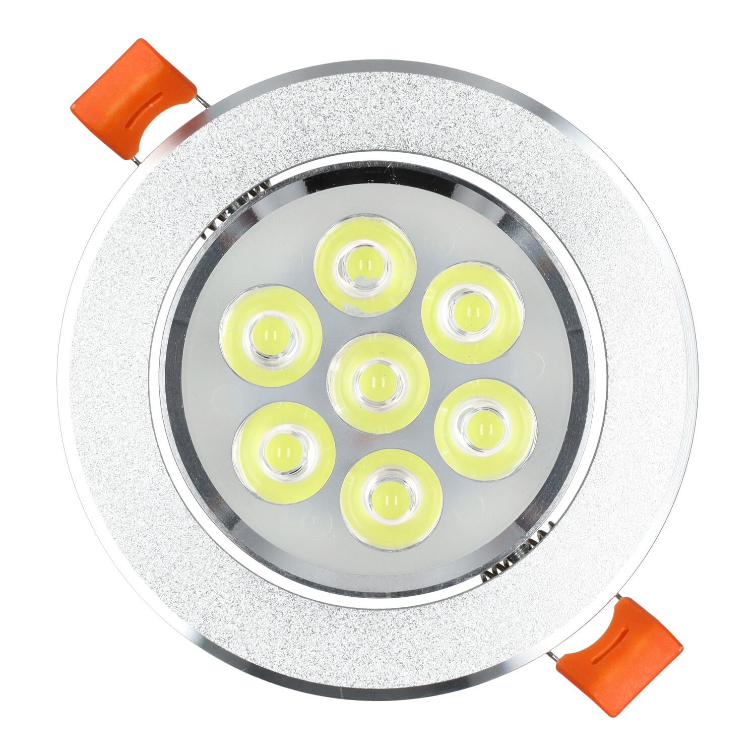 Downlight de LEDs redondo empotrable con acabado en color plata, es uno de los productos más utilizados en iluminación ya que es ideal para su instalación en techos, tanto si cuentan con poco o mucho espacio. Debido a su ángulo de dispersión lumínica de 40° y su estructura basculante, lo hace ideal como fuente de iluminación para uso residencial (pasillos, zonas de entrada, armarios, salones, dormitorios, baños o cocinas) y espacios más amplios como oficinas, tiendas, hoteles, bares, restaurantes o supermercados. No permite regular la intensidad de luz. Son perfectos para sustituir a los halógenos tradicionales, obteniendo un ahorro en la factura de la luz de un 70%. La tecnología LED presenta un menor consumo en comparación con los downlight halógenos convencionales, permitiendo ahorrar cada mes en la factura de la luz. Cuenta con una alta eficacia al consumir 7W mediante el LED SMD3030 7 leds que integra, logrando proporcionar un flujo luminoso de 700 lumens. La iluminación que aporta representa un consumo por valor de 7kWh/1000h, lo que supone una reducción de la cantidad de energía facturada y de emisiones de gases contaminantes a la atmósfera. Este downlight está disponible en dos temperaturas de color: blanca (6000°K) y cálida (3000°K). Su instalación debe realizarse en lugares interiores al poseer un grado de protección IP20 (protección contra partículas sólidas de tamaño superior a 12 mm y no es resistente al agua). Soporta un voltaje de entrada de 220V y una frecuencia de servicio de 50/60 Hz. A la hora de realizar el montaje de cualquier downlight es primorcial tener en cuenta tres dimensiones. En primer lugar, el espesor del downlight (90 mm), por otro lado el diámetro de corte (87 mm) que debe ser igual o menor al agujero del techo, y por último el diámetro externo del downlight (108 mm) que tiene que ser mayor al diámetro del agujero. Además de ser un producto que tiene más de 30.000 horas de vida, dispone de una garantía de 3 años. Cuenta también con el certificado CE, que acredita que se cumple con los requisitos de la UE respecto a compatibilidad electromagnética y normativa de baja tensión. Con este certificado se declara la conformidad de dicho producto con todos los requisitos legales exigidos, y asegura la validez del producto para ser vendido en todo el Espacio Económico Europeo. Incluye driver.