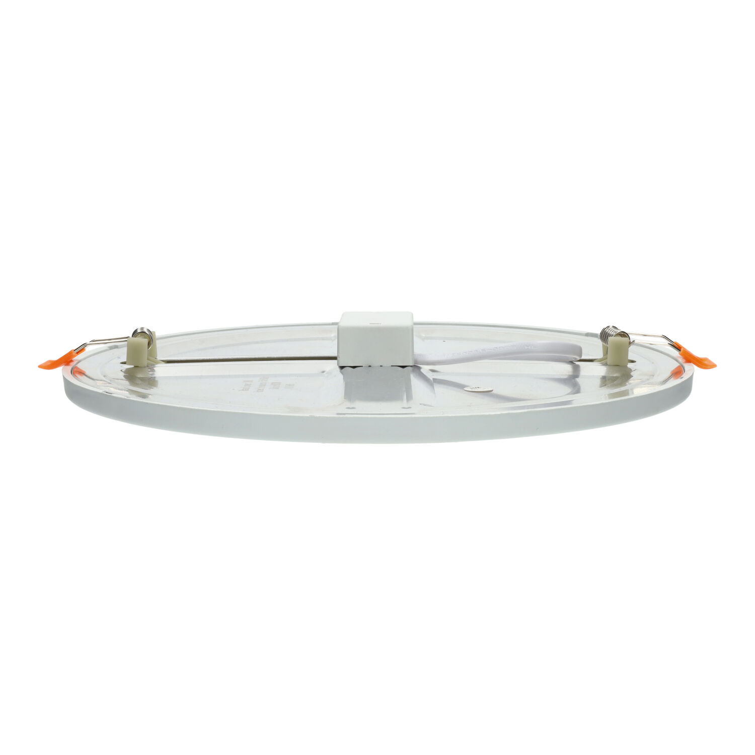 Downlight de LEDs panel extra plano redondo de 20W con acabado en color blanco, es uno de los productos más utilizados en iluminación ya que es ideal para su instalación en techos, tanto si cuentan con poco o mucho espacio. Debido a su ángulo de dispersión lumínica de 120° lo hace ideal como fuente de iluminación para uso residencial (pasillos, zonas de entrada, salones, dormitorios, baños o cocinas) y espacios más amplios como oficinas, tiendas, hoteles, bares, restaurantes o supermercados. No permite regular la intensidad de luz. La tecnología LED presenta un menor consumo en comparación con los downlight halógenos convencionales, permitiendo ahorrar cada mes en la factura de la luz. Cuenta con una alta eficacia al consumir 20W mediante el LED SMD que integra, logrando proporcionar un flujo luminoso de 1650 lumens. La iluminación que aporta representa un consumo por valor de 20kWh/1000h, lo que supone una reducción de la cantidad de energía facturada y de emisiones de gases contaminantes a la atmósfera. Este downlight está disponible en tres temperaturas de color: blanca (6500°K), neutra (4000°K) y cálida (3000°K). Su instalación debe realizarse en lugares interiores al poseer un grado de protección IP20 (protección contra partículas sólidas de tamaño superior a 12mm y no es resistente al agua). Soporta un voltaje de entrada de 185/245V y una frecuencia de servicio de 50/60 Hz. A la hora de realizar el montaje de cualquier downlight es primordial tener en cuenta tres dimensiones. En primer lugar, el espesor del downlight (25 mm), por otro lado el diámetro de corte (50-210 mm) que debe ser igual o menor al agujero del techo, y por último el diámetro externo del downlight (230 mm) que tiene que ser mayor al diámetro del agujero. Las grapas de sujección ajustables permiten la instalación en agujeros desde 5 hasta 21 cm de diámetro, evitando así tener que hacer modificaciones en agujeros existentes. Además de ser un producto que tiene más de 30.000 horas de vida, dispone de una garantía de 3 años. Cuenta también con el certificado CE, que acredita que se cumple con los requisitos de la UE respecto a compatibilidad electromagnética y normativa de baja tensión. Con este certificado se declara la conformidad de dicho producto con todos los requisitos legales exigidos, y asegura la validez del producto para ser vendido en todo el Espacio Económico Europeo. Incluye driver