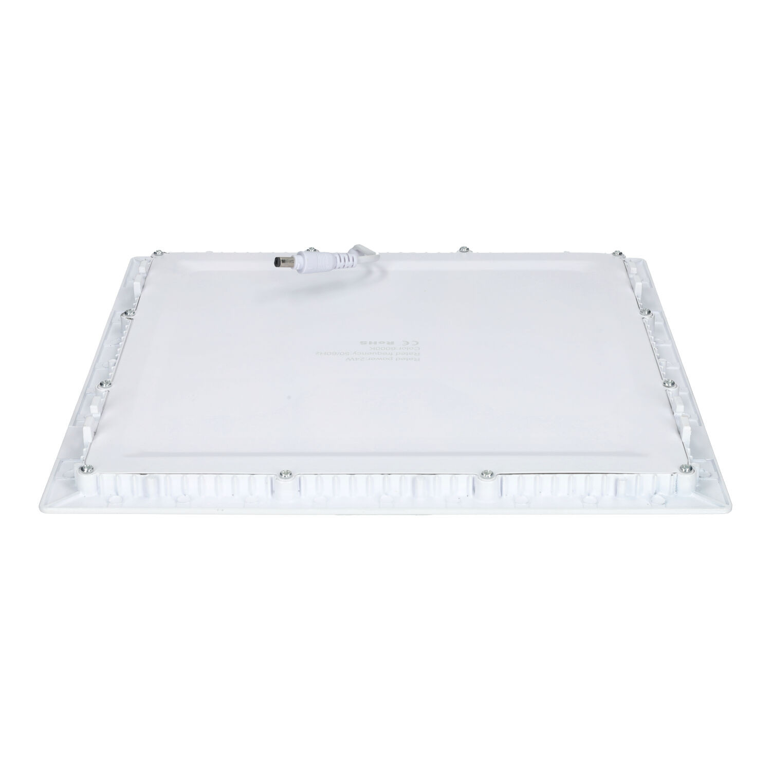 Downlight de LEDs cuadrado extraplano empotrable de 24W con acabado en color blanco, es uno de los productos más utilizados en iluminación ya que es ideal para su instalación en techos, tanto si cuentan con poco o mucho espacio. Debido a su ángulo de dispersión lumínica de 120° lo hace ideal como fuente de iluminación para uso residencial (pasillos, zonas de entrada, salones, dormitorios, baños o cocinas) y espacios más amplios como oficinas, tiendas, hoteles, bares, restaurantes o supermercados. Están diseñados con un grosor ultraplano para poder instalarlos en techos de poca altura. La tecnología LED presenta un menor consumo en comparación con los downlight halógenos convencionales, permitiendo ahorrar cada mes en la factura de la luz. Para evitar daños en el driver o en la luminaria, se debe realizar la instalación sin tensión en la red eléctrica. Nunca conecte un panel a un driver cuando dicho driver tenga tensión eléctrica. Cuenta con una alta eficacia al consumir 24W mediante el LED SMD que integra, logrando proporcionar un flujo luminoso de 2100 lumens. La iluminación que aporta representa un consumo por valor de 24kWh/1000h, lo que supone una reducción de la cantidad de energía facturada y de emisiones de gases contaminantes a la atmósfera. Este downlight está disponible en tres temperaturas de color: blanca (6500°K), neutra (4000°K) y cálida (3000°K). Su instalación debe realizarse en lugares interiores al poseer un grado de protección IP20 (protección contra partículas sólidas de tamaño superior a 12mm y no es resistente al agua). Soporta un voltaje de entrada de 220V y una frecuencia de servicio de 50/60 Hz. A la hora de realizar el montaje de cualquier downlight es primordial tener en cuenta tres dimensiones. En primer lugar, el espesor del downlight (14 mm), por otro lado el tamaño de corte (280 mm) que debe ser igual o menor al agujero del techo, y por último el tamaño externo del downlight (300 mm) que tiene que ser mayor al del agujero. Además de ser un producto que tiene más de 30.000 horas de vida, dispone de una garantía de 3 años. Cuenta también con el certificado CE, que acredita que se cumple con los requisitos de la UE respecto a compatibilidad electromagnética y normativa de baja tensión. Con este certificado se declara la conformidad de dicho producto con todos los requisitos legales exigidos, y asegura la validez del producto para ser vendido en todo el Espacio Económico Europeo. Incluye driver