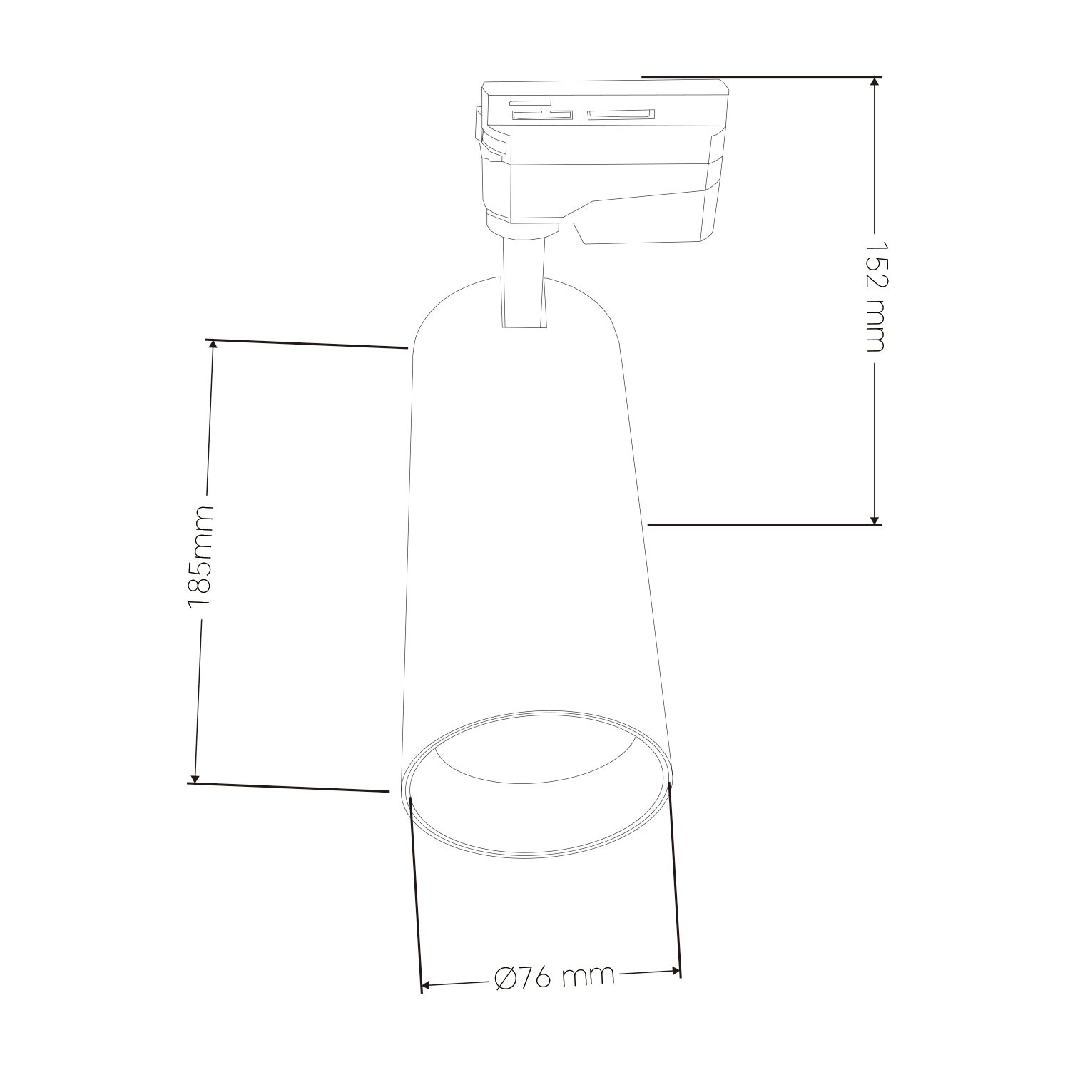El foco carril LED orientable de 30W está diseñado en aluminio y policarbonato con acabado en color negro. Tiene un diseño moderno y compacto que la convierte en una luminaria perfecta para instalaciones tanto en ambientes domésticos, como espacios más comerciales. Dentro del ámbito comercial es ideal para iluminación en tiendas, escaparates, exposiciones, supermercados, hoteles o restaurantes. Destaca por su fácil instalación y su máxima eficiencia energética con un ahorro del 80% con respecto a las lámparas convencionales. Cuenta con una alta eficacia al consumir 30W mediante el LED COB que integra, logrando proporcionar un flujo luminoso de 2700 lumens. La iluminación que aporta representa un consumo por valor de 30kWh/1000h, lo que supone una reducción de la cantidad de energía facturada y de emisiones de gases contaminantes a la atmósfera. Soporta un voltaje de entrada de 180-240V y una frecuencia de servicio de 50/60 Hz. Este proyector está disponible en tres temperaturas de color: cálida (3000°K), neutra (4000°K) y blanca (6000°K). Está diseñado con las medidas de Ø 63 x 180 mm. Debido a su grado de protección IP20 es ideal para instalar en zonas interiores (protección contra partículas sólidas de tamaño superior a 12mm y no es resistente al agua). Además de ser un producto que tiene más de 30.000 horas de vida, dispone de una garantía de 3 años. Cuenta también con el certificado CE, que acredita que se cumple con los requisitos de la UE respecto a compatibilidad electromagnética y normativa de baja tensión. Con este certificado se declara la conformidad de dicho producto con todos los requisitos legales exigidos, y asegura la validez del producto para ser vendido en todo el Espacio Económico Europeo.