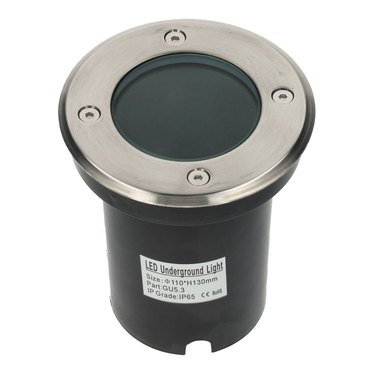 Foco LED redondo, empotrable en suelo. Su grado de protección IP65 ofrece una alta protección contra el agua y el polvo. Además, su cubierta de acero inoxidable le confiere una gran resistencia y durabilidad.Su base permite la colocación de bombillas con casquillo GU5.3, pudiendo así elegir la potencia lumínica y la temperatura de color.Se puede usar como baliza exterior en aceras, jardines, parques, fuentes, piscinas, etc.No incluye bombilla.