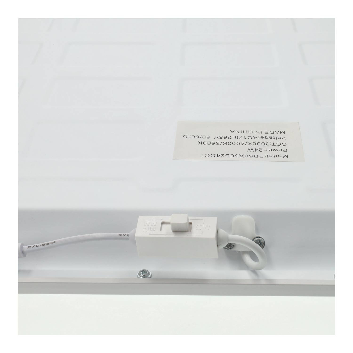 Panel de LEDs de 24W con acabado en color blanco, es uno de los productos más utilizados en iluminación ya que es ideal para su instalación en techos, tanto si cuentan con poco o mucho espacio. Debido a su ángulo de dispersión lumínica de 120° y su iluminación eficiente y suave, lo hace ideal como fuente de iluminación para uso residencial (pasillos, zonas de entrada, salones, dormitorios, baños o cocinas) y espacios más amplios como oficinas, tiendas, hoteles, bares, restaurantes o supermercados. Su diseño le confiere una gran robustez, así como una gran potencia lumínica. Al disponer de LEDs a lo largo de todo el panel, la distribución luminosa es más uniforme en comparación con los paneles extraplanos. Para evitar daños en el driver o en la luminaria, se debe realizar la instalación sin tensión en la red eléctrica. Nunca conecte un panel a un driver cuando dicho driver tenga tensión eléctrica. Cuenta con una alta eficacia al consumir 24W mediante los LEDs SMD que integra, logrando proporcionar un flujo luminoso de 3960 lumens (165lm/W). La iluminación que aporta representa un consumo por valor de 24kWh/1000h, lo que supone una reducción de la cantidad de energía facturada y de emisiones de gases contaminantes a la atmósfera. Este panel dispone de un selector incorporado en la parte trasera pudiéndose elegir la temperatura de color deseada: blanca (6000°K), neutra (4000°K) y cálida (3000°K). Con este producto se logra una luminosidad equivalente a un panel LED tradicional de 40W con un ahorro del 40% en el consumo. Su instalación debe realizarse en lugares interiores al poseer un grado de protección IP20 (protección contra partículas sólidas de tamaño superior a 12mm y no es resistente al agua). Soporta un voltaje de entrada de 220-240V y una frecuencia de servicio de 50 Hz. Está diseñado con las dimensiones de 595 x 595 x 30 mm. A la hora de realizar la instalación, este panel retroiluminado ofrece tres opciones de montaje: (1) posado en techo técnico, (2) atornillado en superficie o (3) suspendido colgado en cables de acero. (a) Instalación mediante Kit instalación panel led colgante: se fijan al techo por mediación de cables de acero y piezas de fijacción. Entrar en Kit instalación panel led colgante. (b) Instalación mediante kit para techos de escayola: consta de unas grapas que se fijan al panel y permiten encastrarlo en el falso techo. Entrar en Kit escayola para panel 60×60 cm. Además de ser un producto que tiene más de 30.000 horas de vida, dispone de una garantía de 3 años. Cuenta también con el certificado CE, que acredita que se cumple con los requisitos de la UE respecto a compatibilidad electromagnética y normativa de baja tensión. Con este certificado se declara la conformidad de dicho producto con todos los requisitos legales exigidos, y asegura la validez del producto para ser vendido en todo el Espacio Económico Europeo. Incluye driver.