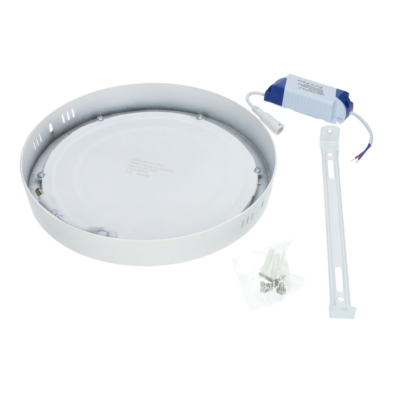 Plafón de LEDs redondo de superficie de 18W con acabado en color blanco, es uno de los productos más utilizados en iluminación ya que es ideal para su instalación en techos, tanto si cuentan con poco o mucho espacio. Debido a su ángulo de dispersión lumínica de 120° y su iluminación eficiente y suave, lo hace ideal como fuente de iluminación para uso residencial (pasillos, zonas de entrada, salones, dormitorios, baños o cocinas) y espacios más amplios como oficinas, tiendas, hoteles, bares, restaurantes o supermercados. Sustituye todo tipo de lámparas de superficie de techo. También está disponible en versión regulable adquiriendo el driver correspondiente. La tecnología LED presenta un menor consumo en comparación con los downlight halógenos convencionales, permitiendo ahorrar cada mes en la factura de la luz. Para evitar daños en el driver o en la luminaria, se debe realizar la instalación sin tensión en la red eléctrica. Nunca conecte un panel a un driver cuando dicho driver tenga tensión eléctrica. Cuenta con una alta eficacia al consumir 18W mediante los LEDs SMD2835 60 leds que integra, logrando proporcionar un flujo luminoso de 1620 lumens. La iluminación que aporta representa un consumo por valor de 18kWh/1000h, lo que supone una reducción de la cantidad de energía facturada y de emisiones de gases contaminantes a la atmósfera. Este plafón está disponible en tres temperaturas de color: blanca (6500°K), neutra (4000°K) y cálida (3000°K) Su instalación debe realizarse en lugares interiores al poseer un grado de protección IP20 (protección contra partículas sólidas de tamaño superior a 12mm y no es resistente al agua). Soporta un voltaje de entrada de 220-240V y una frecuencia de servicio de 50/60 Hz. Está diseñado en aluminio y PVC con las dimensiones de Ø 220 x 40 mm. Su instalación es muy sencilla, no es necesario hacer agujeros para empotrar; basta con una sencilla fijación mediante tornillos. Además de ser un producto que tiene más de 30.000 horas de vida, dispone de una garantía de 3 años. Cuenta también con el certificado CE, que acredita que se cumple con los requisitos de la UE respecto a compatibilidad electromagnética y normativa de baja tensión. Con este certificado se declara la conformidad de dicho producto con todos los requisitos legales exigidos, y asegura la validez del producto para ser vendido en todo el Espacio Económico Europeo. Incluye driver y tornillos de montaje.