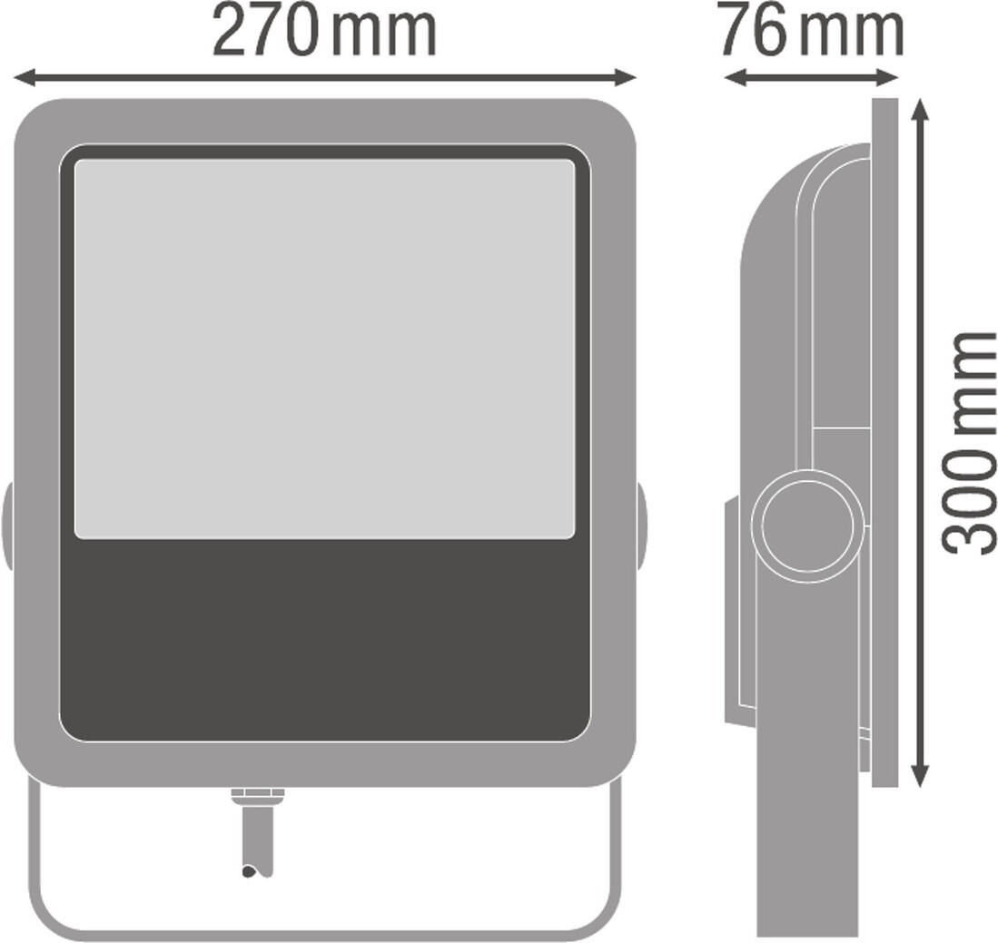 Boîtier en verre trempé pour un éclairage uniforme. Poids et taille optimisés grâce à une conception compacte. Pas d'émission de lumière supérieure (ULOR 0%) en cas d'inclinaison à 0°. Économie d'énergie jusqu'à 90% par rapport aux projecteurs. h