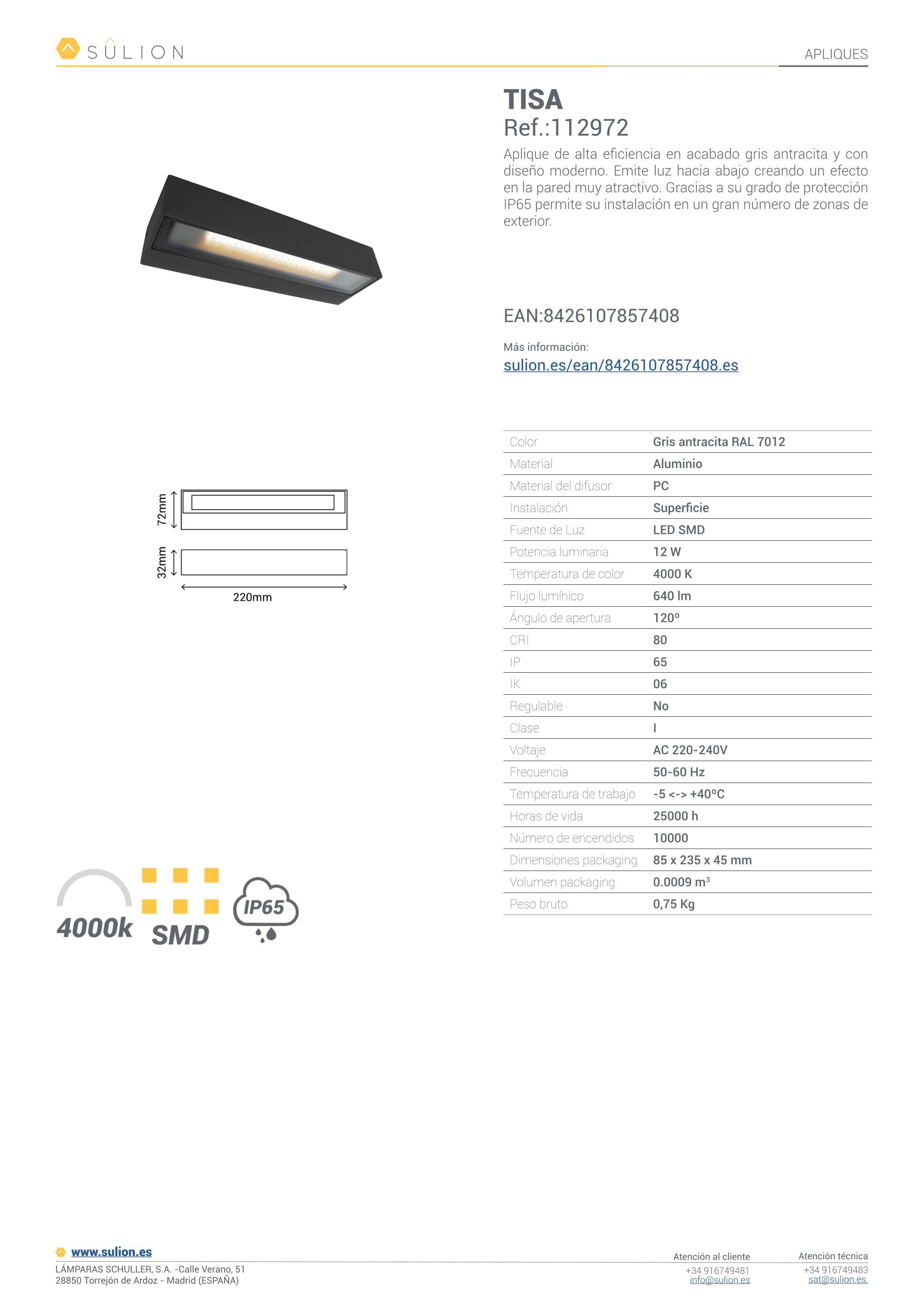 Aplique LED TISA 12W de Sulion