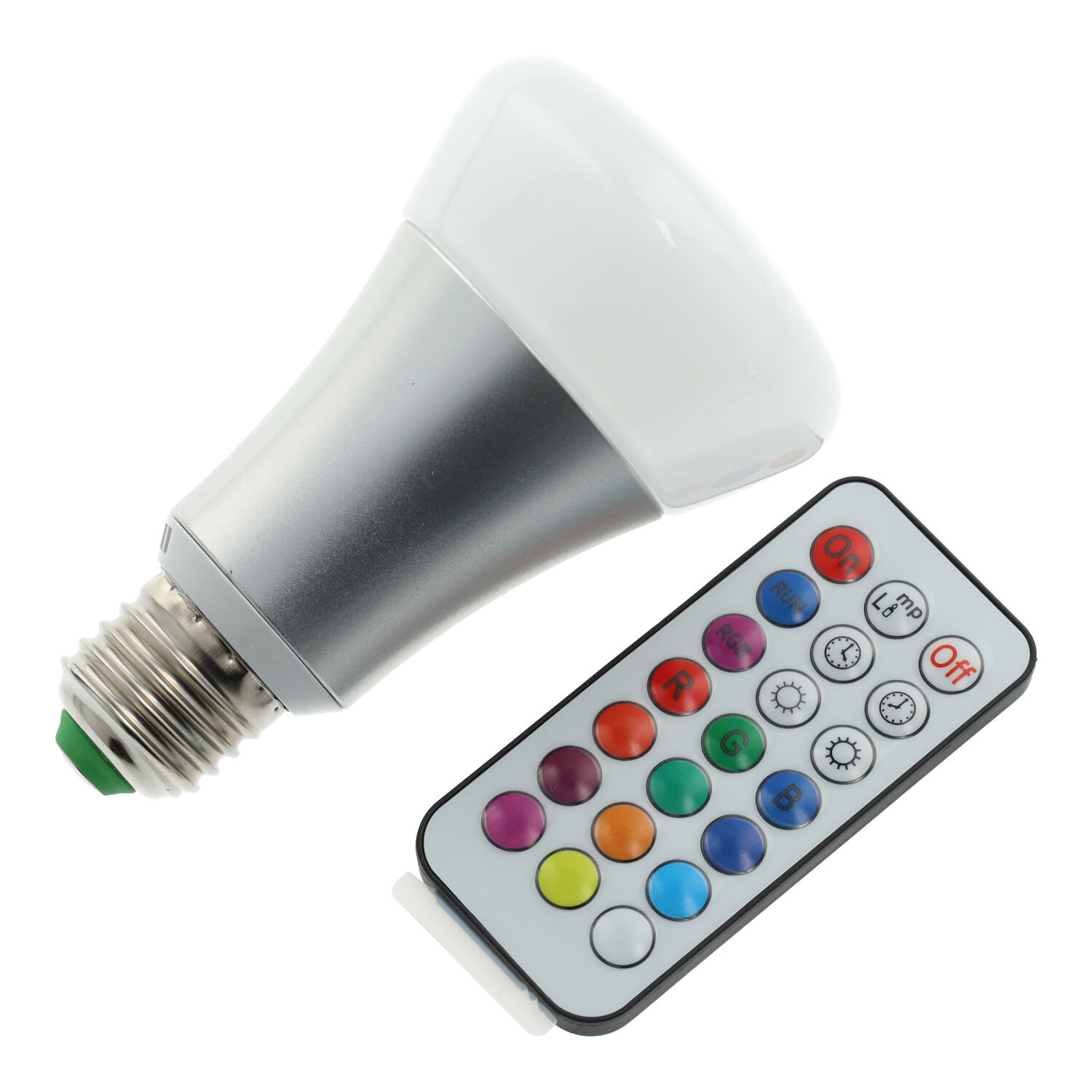 La bombilla LED RGBW de 10W, es una opción ideal para iluminar cualquier espacio de manera eficiente y económica. Las bombillas LED consumen hasta un 85% menos de energía y duran 20 veces más que las bombillas incandescentes. La tecnología RGBW, permite reproducir el tono de luz blanco puro, haciendo que la bombilla pueda lucir como una bombilla normal de luz blanca. La bombilla conserva la última configuración incluso si se apaga en el interruptor. Incluye un mando a distancia por infrarrojos que permite seleccionar el color deseado, la intensidad de luz, la velocidad o modo de funcionamiento. Su instalación debe realizarse en lugares interiores al poseer un grado de protección IP20 (protección contra partículas sólidas de tamaño superior a 12mm y no es resistente al agua). Es ideal para cualquier estancia dentro del hogar, restaurantes, bares, hoteles o discotecas. Los LEDs que integra son capaces de proporcionar un flujo luminoso de 900 lumens distribuidos uniformemente por un difusor de PVC, distribuyendo la luz en un ángulo de apertura de 330°. Posee unas dimensiones de ∅ 115 X 70 mm. Se instala en un casquillo de rosca normal (E27) pudiendo soportar un voltaje de entrada entre 85 y 265V, y una frecuencia de 50/60 Hz. Además de ser un producto que tiene más de 30.000 horas de vida, dispone de una garantía de 3 años. Cuenta también con el certificado CE, que acredita que se cumple con los requisitos de la UE respecto a compatibilidad electromagnética y normativa de baja tensión. Con este certificado se declara la conformidad de dicho producto con todos los requisitos legales exigidos, y asegura la validez del producto para ser vendido en todo el Espacio Económico Europeo.