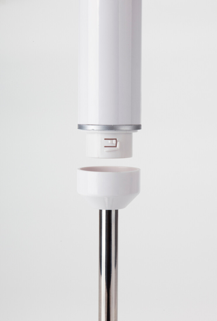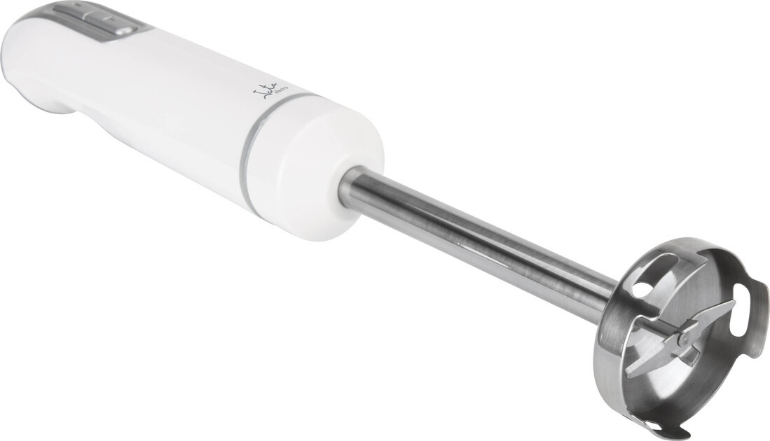 Double lame et pied en acier inoxydable haute puissance pour hacher et déchiqueter facilement. 2 boutons poussoirs pour 2 vitesses. Gobelet de 800 m. inclus.