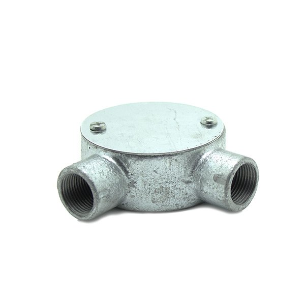 Caja de distribución redonda, para instalación en superficie, con dos vías roscadas de métrica M20 x 1,5.Se pueden acoplar tubos roscados o tubos de acero enchufables utilizando el adaptador M20.Incluye tapa de acero galvanizado con sus correspondientes tornillos.Ideal para realizar derivaciones en las instalaciones con canalizaciones eléctricas metálicas.