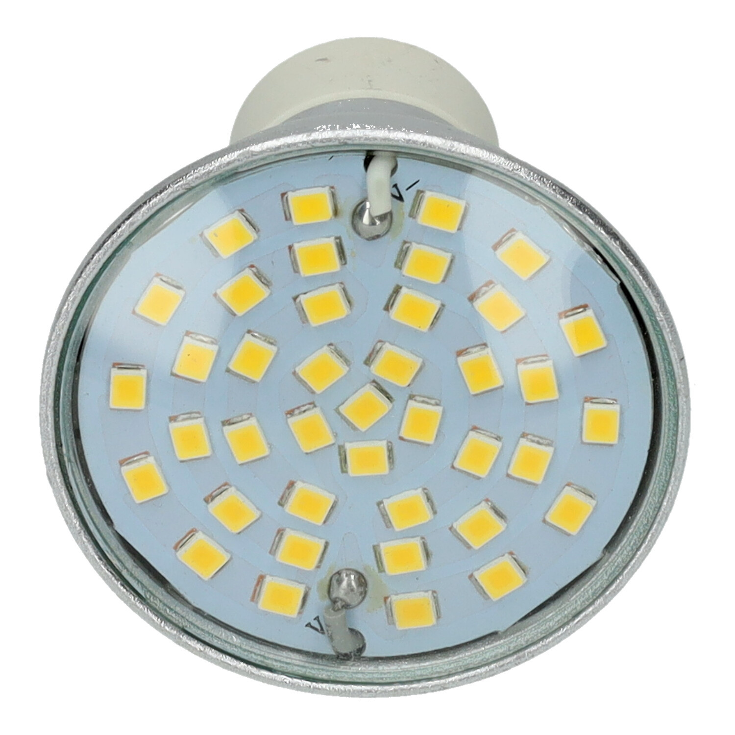 La bombilla LED GU10 dicroica de 7W, es una opción ideal para iluminar cualquier espacio de manera eficiente y económica. Esta bombilla es ideal para reemplazar a los halógenos tradicionales de hasta 60W. Las bombillas LED consumen hasta un 85% menos de energía y duran 20 veces más que las bombillas incandescentes. Este tipo de bombilla no permite regular la intensidad de la luz. Su instalación debe realizarse en lugares interiores al poseer un grado de protección IP20 (protección contra partículas sólidas de tamaño superior a 12 mm y no es resistente al agua). Es ideal para su uso dentro del hogar, restaurantes, tiendas, comercios, hoteles o centros comerciales. Los LEDs SMD que integra proporcionan un flujo luminoso de 660 lumens distribuidos uniformemente por un difusor de PVC, distribuyendo la luz en un ángulo de apertura de 120°. Posee unas dimensiones de ∅ 50 X 59 mm. Se instala en un casquillo del tipo GU10 conectado directamente a la toma de corriente (220V) con una frecuencia de servicio de 50/60 Hz. Está disponible en tres temperaturas de color, blanca (6000°K) , neutra (4000°K) y cálida (3000°K). Además de ser un producto que tiene más de 30.000 horas de vida, dispone de una garantía de 3 años. Cuenta también con el certificado CE, que acredita que se cumple con los requisitos de la UE respecto a compatibilidad electromagnética y normativa de baja tensión. Con este certificado se declara la conformidad de dicho producto con todos los requisitos legales exigidos, y asegura la validez del producto para ser vendido en todo el Espacio Económico Europeo.