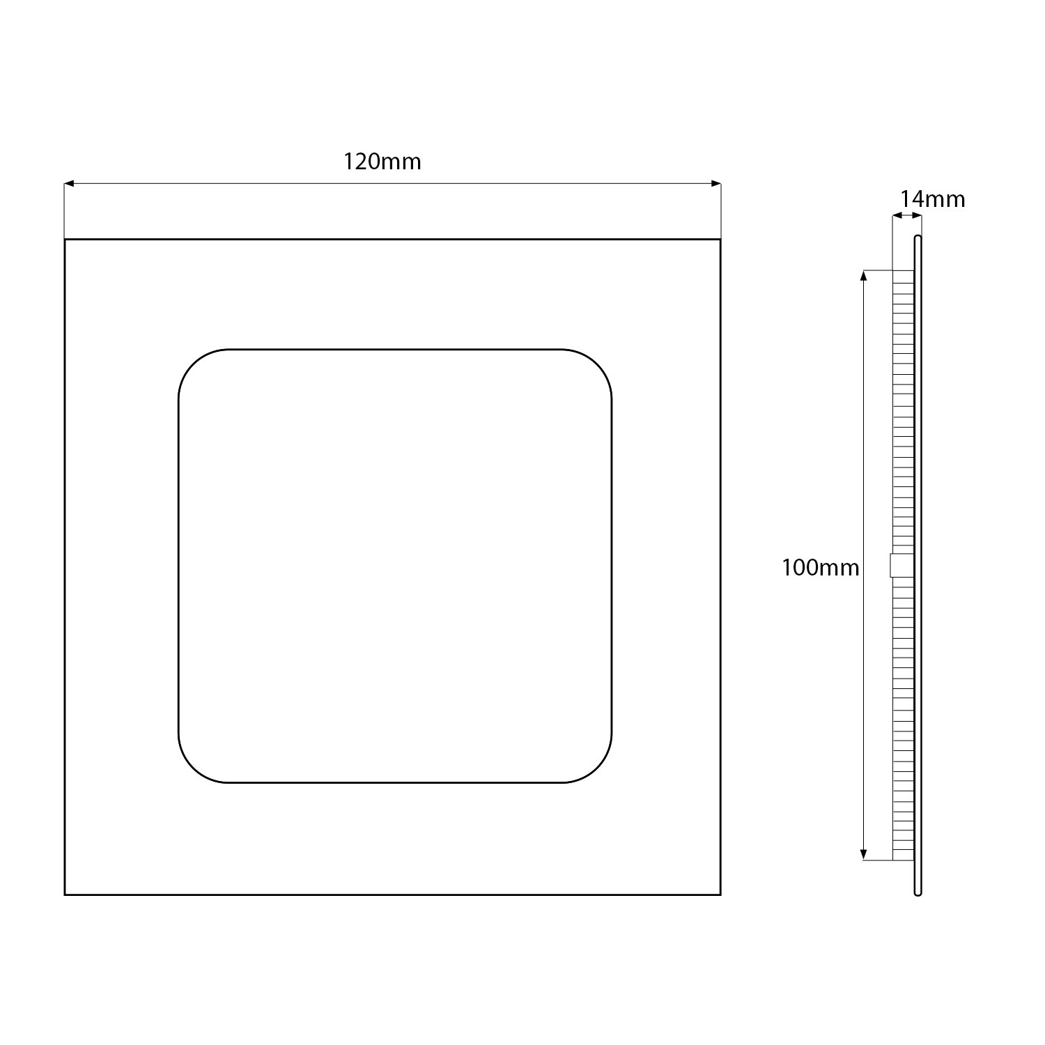 Downlight de LEDs cuadrado extraplano empotrable de 6W con acabado en color blanco, es uno de los productos más utilizados en iluminación ya que es ideal para su instalación en techos, tanto si cuentan con poco o mucho espacio. Debido a su ángulo de dispersión lumínica de 120° lo hace ideal como fuente de iluminación para uso residencial (pasillos, zonas de entrada, salones, dormitorios, baños o cocinas) y espacios más amplios como oficinas, tiendas, hoteles, bares, restaurantes o supermercados. También disponible en versión regulable, adquiriendo el driver regulable. Están diseñados con un grosor ultraplano para poder instalarlos en techos de poca altura. La tecnología LED presenta un menor consumo en comparación con los downlight halógenos convencionales, permitiendo ahorrar cada mes en la factura de la luz. Para evitar daños en el driver o en la luminaria, se debe realizar la instalación sin tensión en la red eléctrica. Nunca conecte un panel a un driver cuando dicho driver tenga tensión eléctrica. Cuenta con una alta eficacia al consumir 6W mediante el LED SMD2835 30 leds que integra, logrando proporcionar un flujo luminoso de 540 lumens. La iluminación que aporta representa un consumo por valor de 6kWh/1000h, lo que supone una reducción de la cantidad de energía facturada y de emisiones de gases contaminantes a la atmósfera. Este downlight está disponible en tres temperaturas de color: blanca (6500°K), neutra (4000°K) y cálida (3000°K). Su instalación debe realizarse en lugares interiores al poseer un grado de protección IP20 (protección contra partículas sólidas de tamaño superior a 12mm y no es resistente al agua). Soporta un voltaje de entrada de 220/240V y una frecuencia de servicio de 50/60 Hz. A la hora de realizar el montaje de cualquier downlight es primordial tener en cuenta tres dimensiones. En primer lugar, el espesor del downlight (14 mm), por otro lado el tamaño de corte (100 mm) que debe ser igual o menor al agujero del techo, y por último el tamaño externo del downlight (120 mm) que tiene que ser mayor al del agujero. Además de ser un producto que tiene más de 30.000 horas de vida, dispone de una garantía de 3 años. Cuenta también con el certificado CE, que acredita que se cumple con los requisitos de la UE respecto a compatibilidad electromagnética y normativa de baja tensión. Con este certificado se declara la conformidad de dicho producto con todos los requisitos legales exigidos, y asegura la validez del producto para ser vendido en todo el Espacio Económico Europeo. Incluye driver