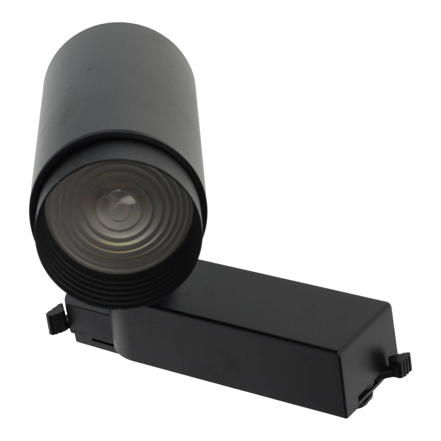 El foco carril LED orientable de 30W está diseñado en aluminio mate con acabado en color negro. Tiene un diseño moderno y compacto que la convierte en una luminaria perfecta para instalaciones tanto en ambientes domésticos, como espacios más comerciales. Dentro del ámbito comercial es ideal para iluminación en tiendas, escaparates, exposiciones, supermercados, hoteles o restaurantes. Destaca por su fácil instalación y su máxima eficiencia energética con un ahorro del 80% con respecto a las lámparas convencionales. Incorpora una óptica que permite regular el ángulo del haz de luz desde 15 hasta 60 grados. Cuenta con una alta eficacia al consumir 30W mediante el LED COB que integra, logrando proporcionar un flujo luminoso de 2700 lumens. La iluminación que aporta representa un consumo por valor de 30kWh/1000h, lo que supone una reducción de la cantidad de energía facturada y de emisiones de gases contaminantes a la atmósfera. Soporta un voltaje de entrada de 185-265V y una frecuencia de servicio de 50/60 Hz. En la parte posterior, dispone de un selector para elegir la temperatura de color deseada estando disponible en tres temperaturas de color: cálida (3000°K), neutra (4000°K) y blanca (6000°K). Está diseñado con las medidas de Ø 100 x 145 x 140 mm. Debido a su grado de protección IP20 es ideal para instalar en zonas interiores (protección contra partículas sólidas de tamaño superior a 12mm y no es resistente al agua). Además de ser un producto que tiene más de 30.000 horas de vida, dispone de una garantía de 3 años. Cuenta también con el certificado CE, que acredita que se cumple con los requisitos de la UE respecto a compatibilidad electromagnética y normativa de baja tensión. Con este certificado se declara la conformidad de dicho producto con todos los requisitos legales exigidos, y asegura la validez del producto para ser vendido en todo el Espacio Económico Europeo. Integra adaptador para carril monofásico y transformador.