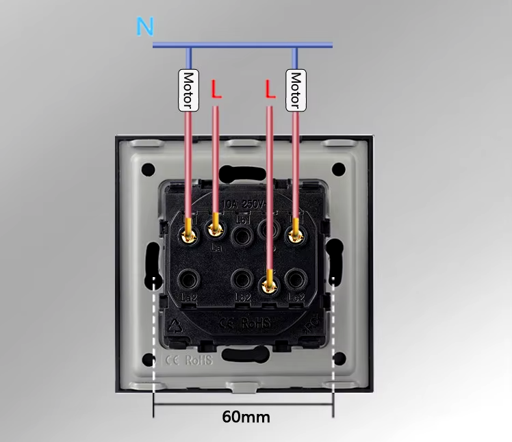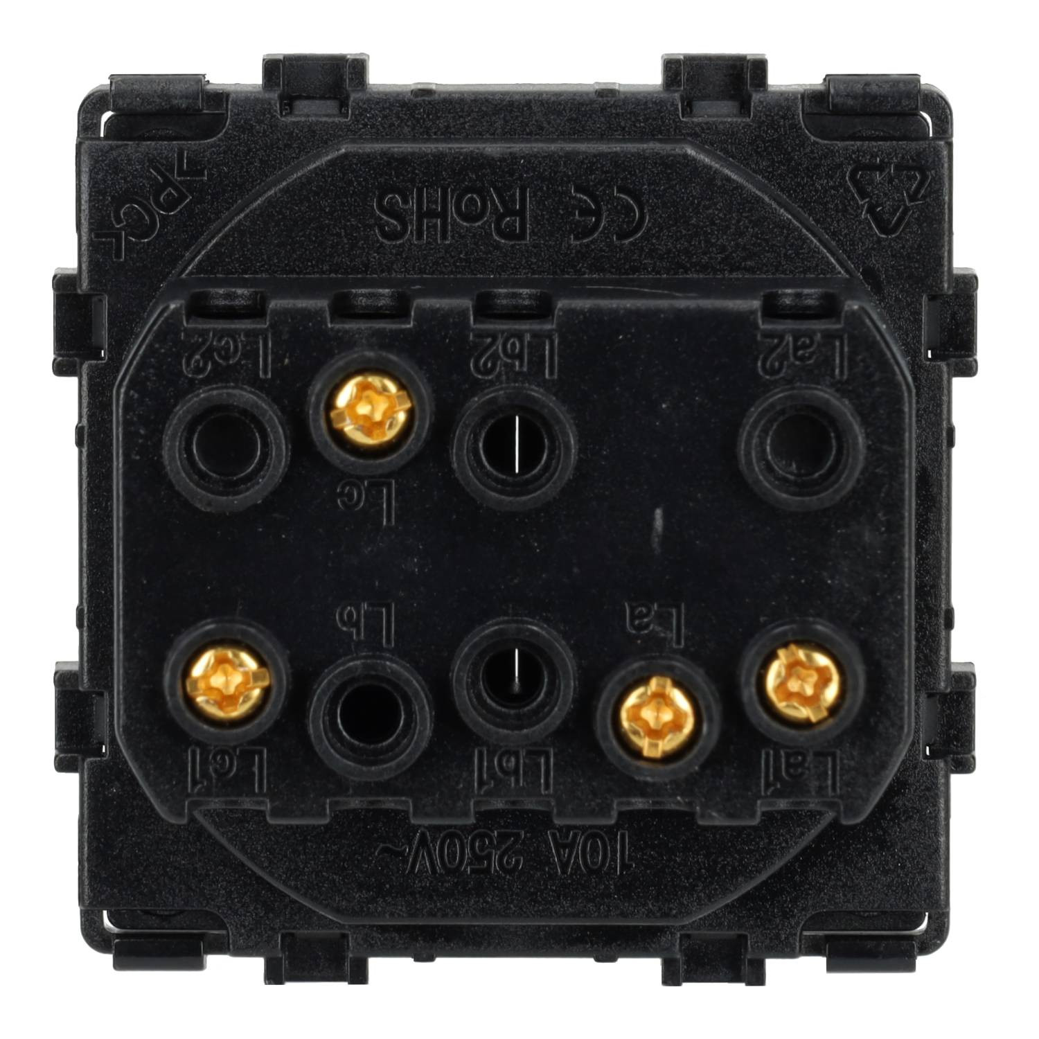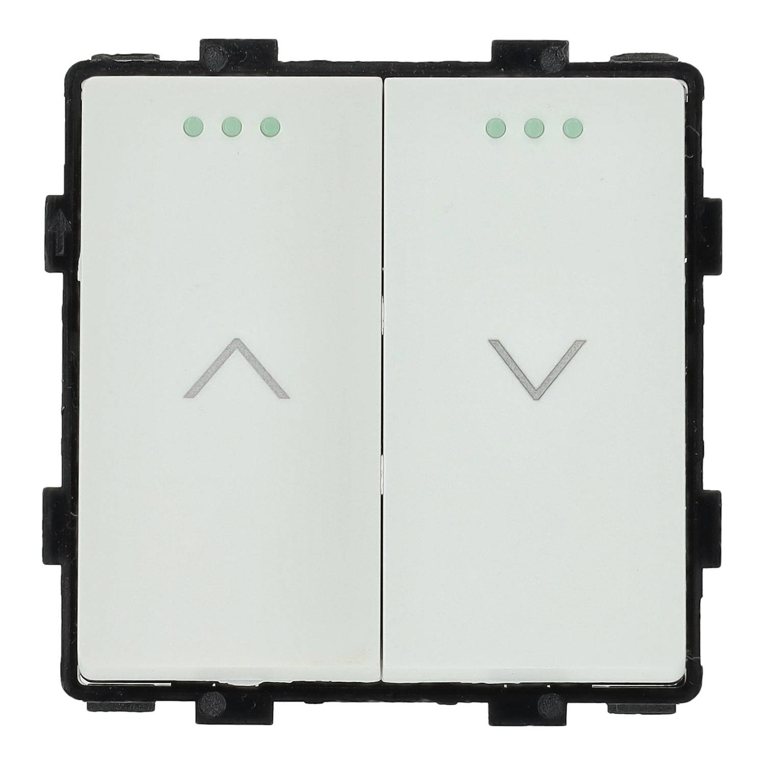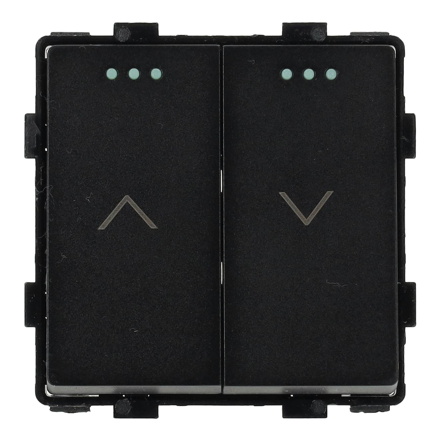 Interruptor de dos teclas para contrlol de persianas serie cristal, disponible en dos colores: blanco y negro. Mediante la pulsación mantenida de una tecla, la persiana subirá o bajará hasta finalizar la pulsación o alcanzar el final de carrera. Su placa incluye testigos fosforescentes que permiten localizar el interruptor fácilmente en la oscuridad. Es ideal para el control de persianas eléctricas, toldos, cortinas o cualquier otro sistema similar. Combinando este interruptor con nuestros marcos de la serie cristal, se puede obtener una decoración moderna y minimalista en cualquier estancia. Compatible con cajas de mecanismos universales. Interruptor sin enclavamiento. Este mecanismo solo se puede instalar en los marcos de la serie cristal. No compatible con los marcos de la serie pc. Carga máxima soportada: 10A. Está diseñado en policarbonato con las medidas 50 x 50 x 30 mm. Soporta un voltaje de entrada de 100-240V y una frecuencia de servicio de 50/60 Hz. Debido a su grado de protección IP20 es ideal para instalar en zonas interiores (protección contra partículas sólidas de tamaño superior a 12mm y no es resistente al agua). Dispone de una garantía de 3 años. Cuenta también con el certificado CE, que acredita que se cumple con los requisitos de la UE respecto a compatibilidad electromagnética y normativa de baja tensión. Con este certificado se declara la conformidad de dicho producto con todos los requisitos legales exigidos, y asegura la validez del producto para ser vendido en todo el Espacio Económico Europeo. Incluye tornillos para el montaje.