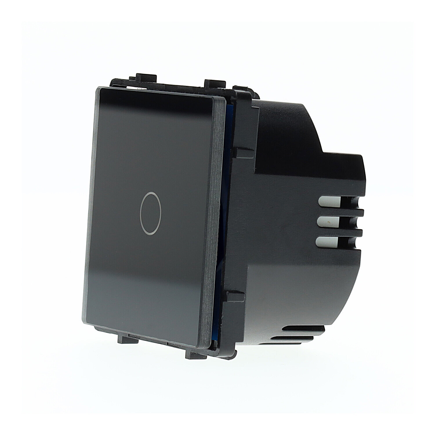 Interruptor táctil simple conmutado de 800W, disponible en dos colores: blanco y negro. Su placa de cristal templado retroiluminada permite localizar el interruptor fácilmente en la oscuridad. Apto para ser utilizado con iluminación LED, sin provocar parpadeos molestos en las bombillas. Combinando este interruptor con nuestros marcos de cristal, se puede obtener una decoración moderna y minimalista en cualquier estancia, siendo ideal para el encendido y apagado de luminarias, electrodomésticos y otros aparatos eléctricos. Es perfecto para salones, dormitorios, oficinas y otros espacios donde se busque un control de iluminación moderno y eficiente. Este interruptor táctil no solo facilita el manejo de la luz, sino que también añade un toque estético al ambiente. Este mecanismo solo se puede conectar con otro interruptor táctil simple conmutado. No es compatible con conmutadores mecánicos ni con interruptores táctiles conmutados dobles. Compatible con cajas de mecanismos universales y los marcos de la serie cristal. Mecanismo no compatible con los marcos de la serie PC. Está diseñado en policarbonato con las medidas 50 x 50 x 30 mm. Soporta un voltaje de entrada de 100-240V y una frecuencia de servicio de 50/60 Hz. Debido a su grado de protección IP20 es ideal para instalar en zonas interiores (protección contra partículas sólidas de tamaño superior a 12mm y no es resistente al agua). Dispone de una garantía de 3 años. Cuenta también con el certificado CE, que acredita que se cumple con los requisitos de la UE respecto a compatibilidad electromagnética y normativa de baja tensión. Con este certificado se declara la conformidad de dicho producto con todos los requisitos legales exigidos, y asegura la validez del producto para ser vendido en todo el Espacio Económico Europeo. Incluye manual de instrucciones.
