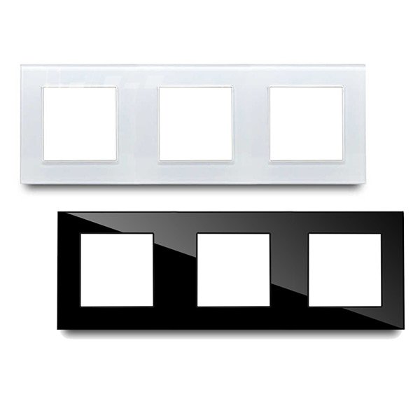 Marco embellecedor de cristal para tres elementos, disponible en dos colores: blanco o negro. Ideal para crear un acabado moderno y minimalista en cualquier instalación interior. Es un mecanismo apto para instalación sobre cajas de mecanismos empotrables universales. No compatible con los mecanismos de la serie PC. Está diseñado en cristal y policarbonato con las medidas 228 x 86 x 9 mm. Debido a su grado de protección IP20 es ideal para instalar en zonas interiores (protección contra partículas sólidas de tamaño superior a 12mm y no es resistente al agua). Dispone de una garantía de 3 años. Cuenta también con el certificado CE, que acredita que se cumple con los requisitos de la UE respecto a compatibilidad electromagnética y normativa de baja tensión. Con este certificado se declara la conformidad de dicho producto con todos los requisitos legales exigidos, y asegura la validez del producto para ser vendido en todo el Espacio Económico Europeo. Incluye bastidor.
