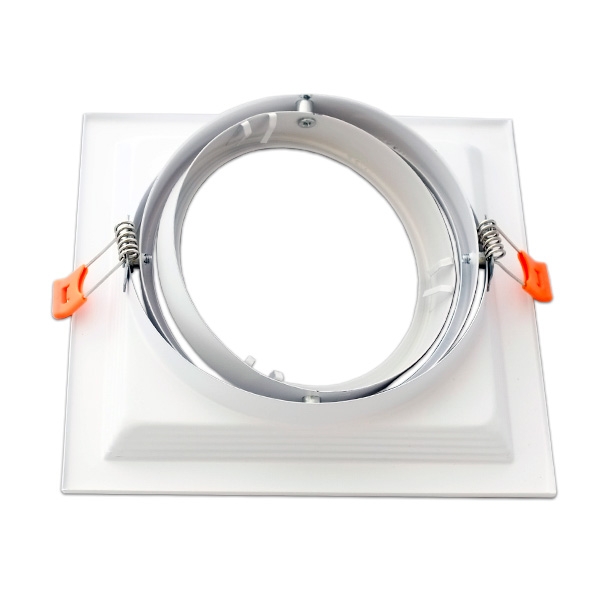 Este marco cuadrado de empotrar es ideal para la instalación de lámparas AR111. Su aro orientable permite dirigir el haz de luz de manera precisa en la dirección deseada para crear el ambiente perfecto dentro de cualquier estancia. Su diseño está pensado para ofrecer un ángulo de apertura pequeño y concentrar el haz de luz de la bombilla. Está fabricado en aluminio de color blanco mate con las medidas de 182 x 182 mm. La medida de corte es 150 X 150 mm. Su instalación es muy sencilla, ya que únicamente debemos tener en cuenta la medida de corte (150 X 150 mm) en el techo para empotrar la base redonda. Respecto a la luz que emite este elemento dependerá siempre de la bombilla que escojamos, pudiendo ser una luz fría, neutra o cálida. Su instalación debe realizarse en lugares interiores al poseer un grado de protección IP20 (protección contra partículas sólidas de tamaño superior a 12 mm y no es resistente al agua). Es ideal para su uso dentro del hogar, restaurantes, tiendas, comercios, hoteles o centros comerciales. Dispone de una garantía de 3 años. Cuenta también con el certificado CE, que acredita que se cumple con los requisitos de la UE respecto a compatibilidad electromagnética y normativa de baja tensión. Con este certificado se declara la conformidad de dicho producto con todos los requisitos legales exigidos, y asegura la validez del producto para ser vendido en todo el Espacio Económico Europeo. No incluye bombilla