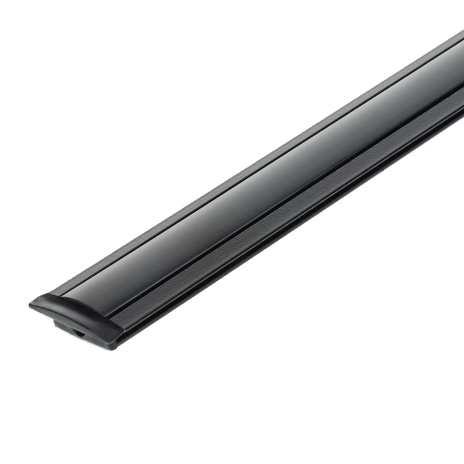 Perfil rectangular de aluminio de 1 m, en color negro, con cubierta en PVC y con pestañas en color negro, para tiras led de hasta 10 mm de ancho, que se emplea para ocultar y proteger las tiras led. Este tipo de perfil se utiliza en instalaciones en interior para ocultar y proteger las tiras led. Al disponer de una cubierta opaca se reduce la intensidad lumínica y el deslumbramiento, creando ambientes acogedores. Los perfiles se emplean tanto para tiras led rígidas como flexibles, pudiéndose utilizar para diferentes aplicaciones. Compatible sólo con tiras de 12V y 24V (excepto las que tienen protección IP65) y tiras de 220V autorrectificadas. Debido a su grado de protección IP20 es ideal para instalar en zonas interiores (protección contra partículas sólidas de tamaño superior a 12mm y no es resistente al agua). Dispone de una garantía de 3 años. Cuenta también con el certificado CE, que acredita que se cumple con los requisitos de la UE respecto a compatibilidad electromagnética y normativa de baja tensión. Con este certificado se declara la conformidad de dicho producto con todos los requisitos legales exigidos, y asegura la validez del producto para ser vendido en todo el Espacio Económico Europeo. Incluye perfil de aluminio de 1 m, difusor traslúcido, tapas finales de aluminio y grapas para sujeción.
