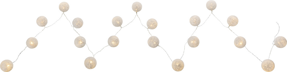 Guirlande de boules de 60 mm de diamètre alimentée par des piles AA non incluses.