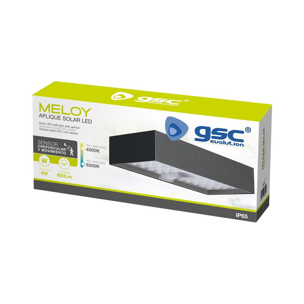 200210008 APLIQUE SOLAR LED MELOY CON SENSOR CREPUSCULAR Y MOVIMIENTO 6W 4000K IP65 GSC