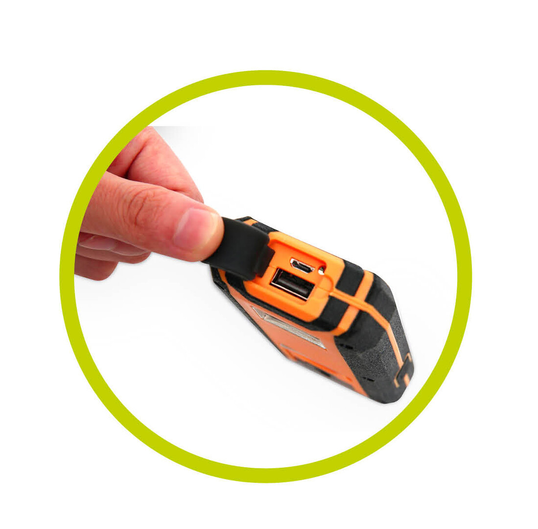 Alta luminosidad. Con imán y gancho. Batería de 3400 mAh que sirve como cargador de dispositivos tales como móviles o tablets.