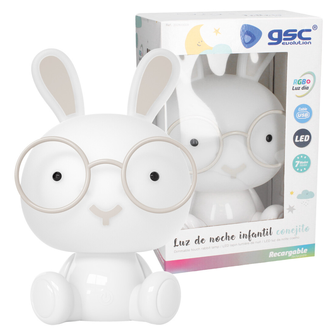 202800009 LAMPARA LED INFANTIL CONEJITO RGB + LUZ DIA RECARGABLE BLANCO 2,5W GSC