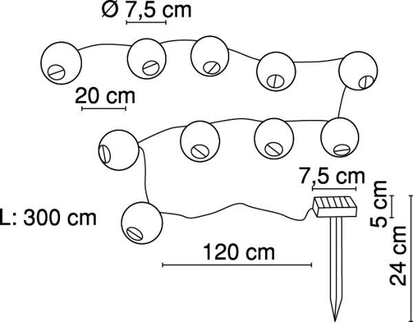 33971W 3m GUIRNALDA SOLAR 10 BOLAS 6000K IP44 GLOBO