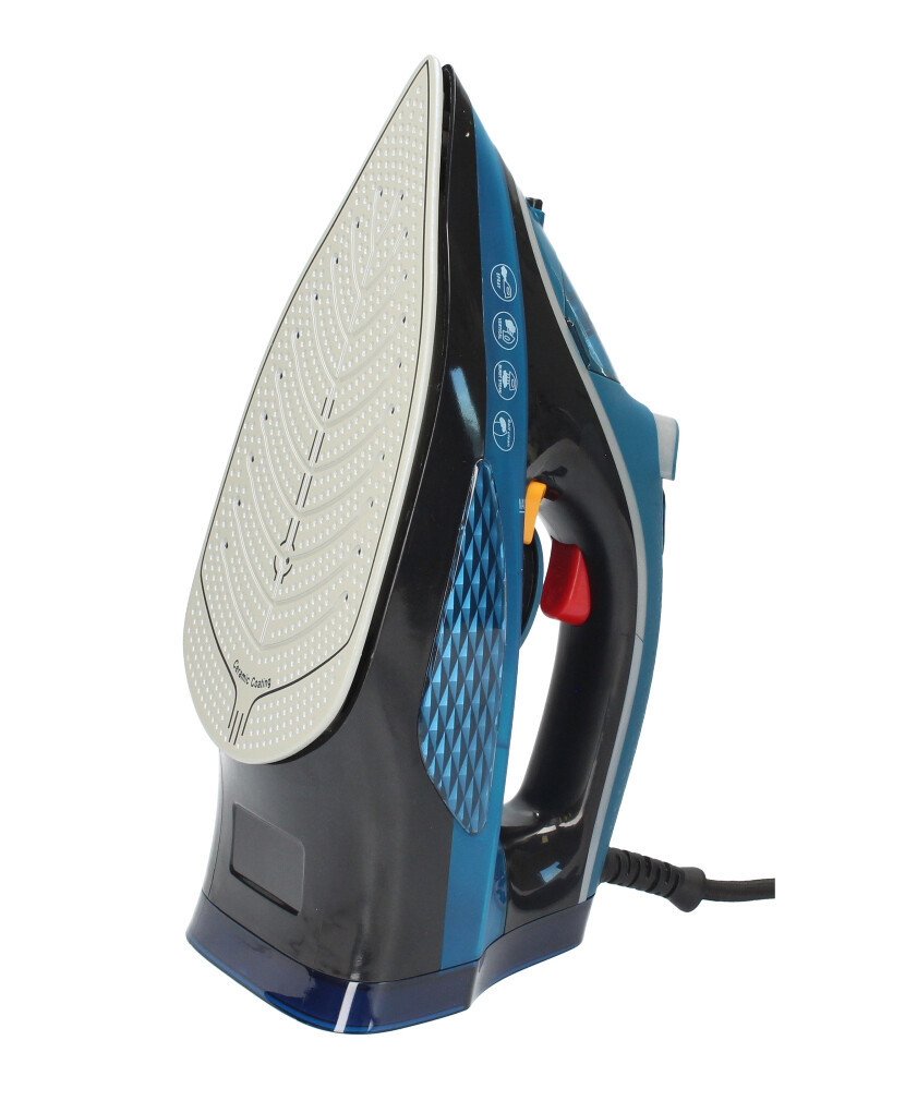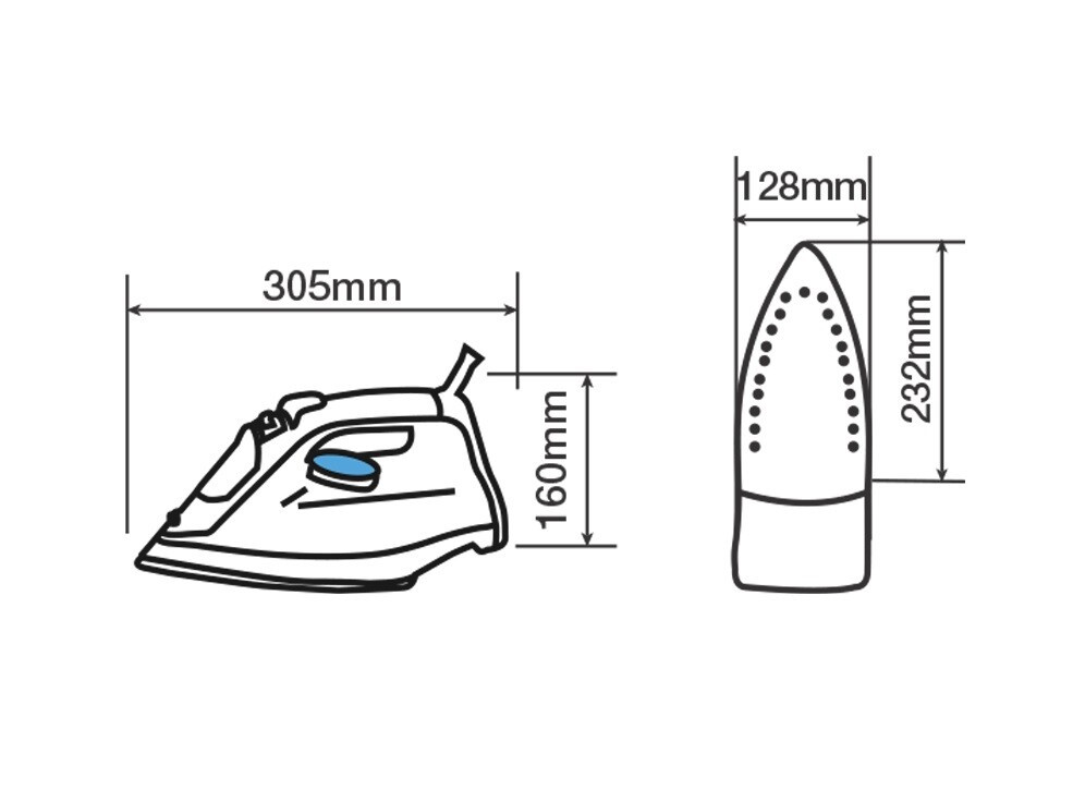 Temperatura controlada por el termostato. Potente caudal de vapor. Cable protector con giro de 360º. Depósito de agua translúcido con tapa de seguridad. Mando regulador de temperatura. Funciones de planchado: en seco, en spray, vapor variable, vapor en ve