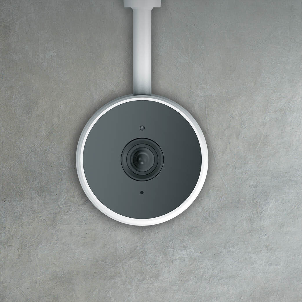 Cámara SMART , funciona con smartphones, Alexa y Google Home. Admite varios dispositivos conectados a la vez. Cuenta con entrada y salida de audio. Posibilidad para intalar en techo y pared. Ángulo del lente 130°.