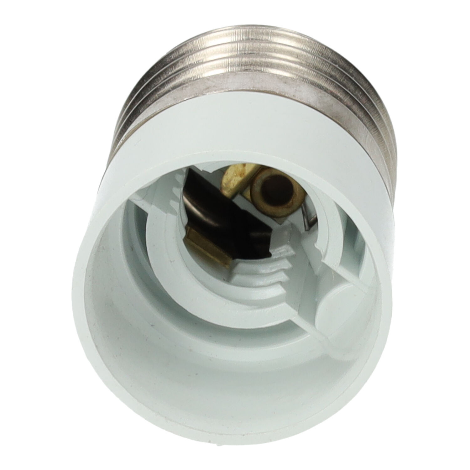 El adaptador de casquillo E14 a E27 permite colocar cualquier lámpara con base E14 en soportes E27. Está fabricado en cerámica con las medidas Ø 28 x 43 mm. Su instalación debe realizarse en lugares interiores al poseer un grado de protección IP20 (protección contra partículas sólidas de tamaño superior a 12 mm y no es resistente al agua). Dispone de una garantía de 3 años. Cuenta también con el certificado CE, que acredita que se cumple con los requisitos de la UE respecto a compatibilidad electromagnética y normativa de baja tensión. Con este certificado se declara la conformidad de dicho producto con todos los requisitos legales exigidos, y asegura la validez del producto para ser vendido en todo el Espacio Económico Europeo.