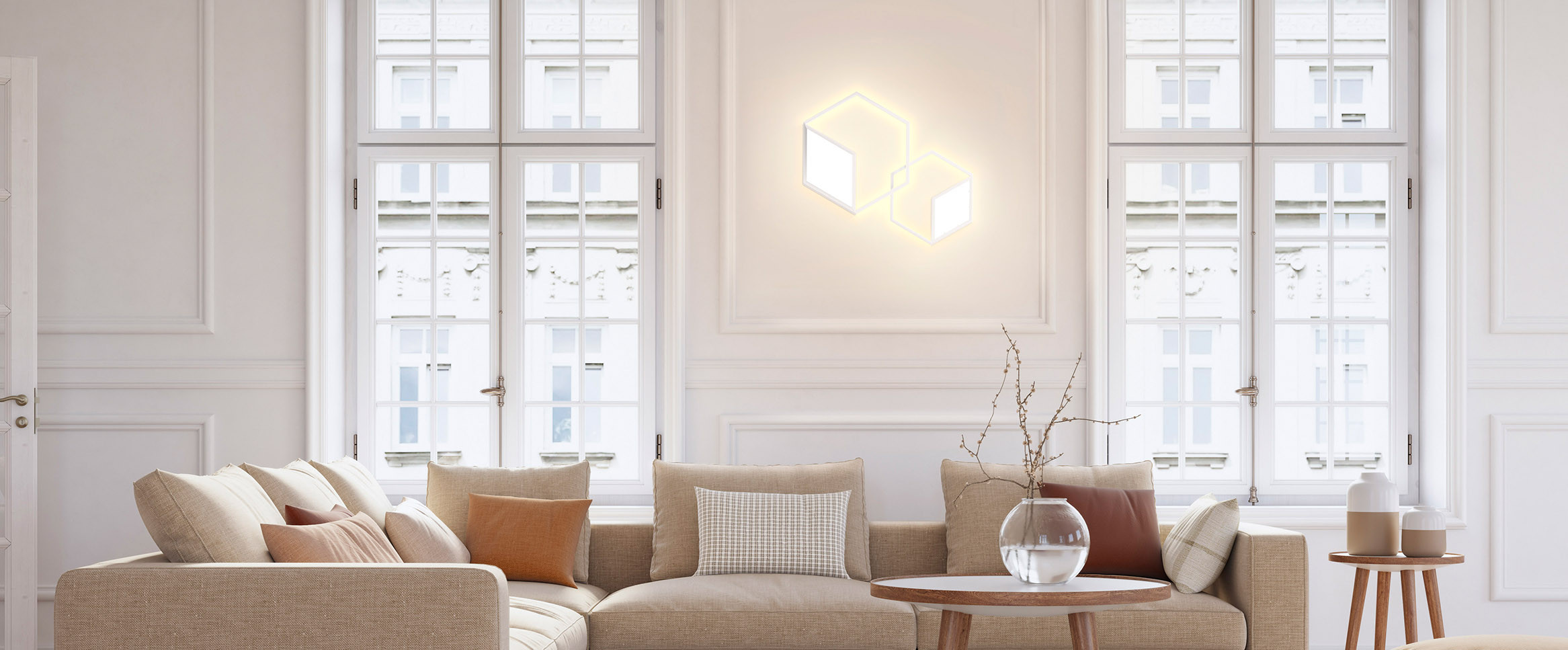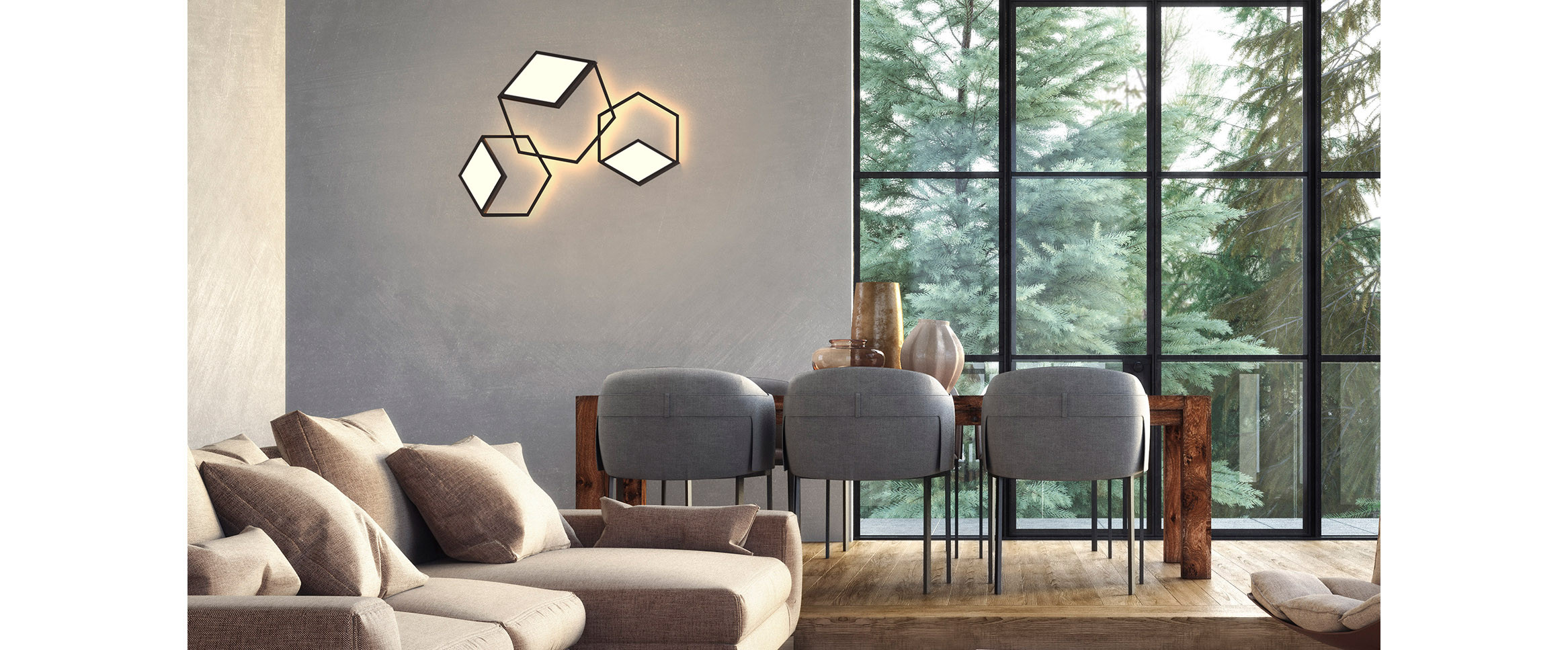 Aplique KUBICK 14W de Mantra. Permite combinar varias lámparas para crear toda clase de formas geométricas, ideal para iluminación decorativa en entornos minimalistas y contemporáneos