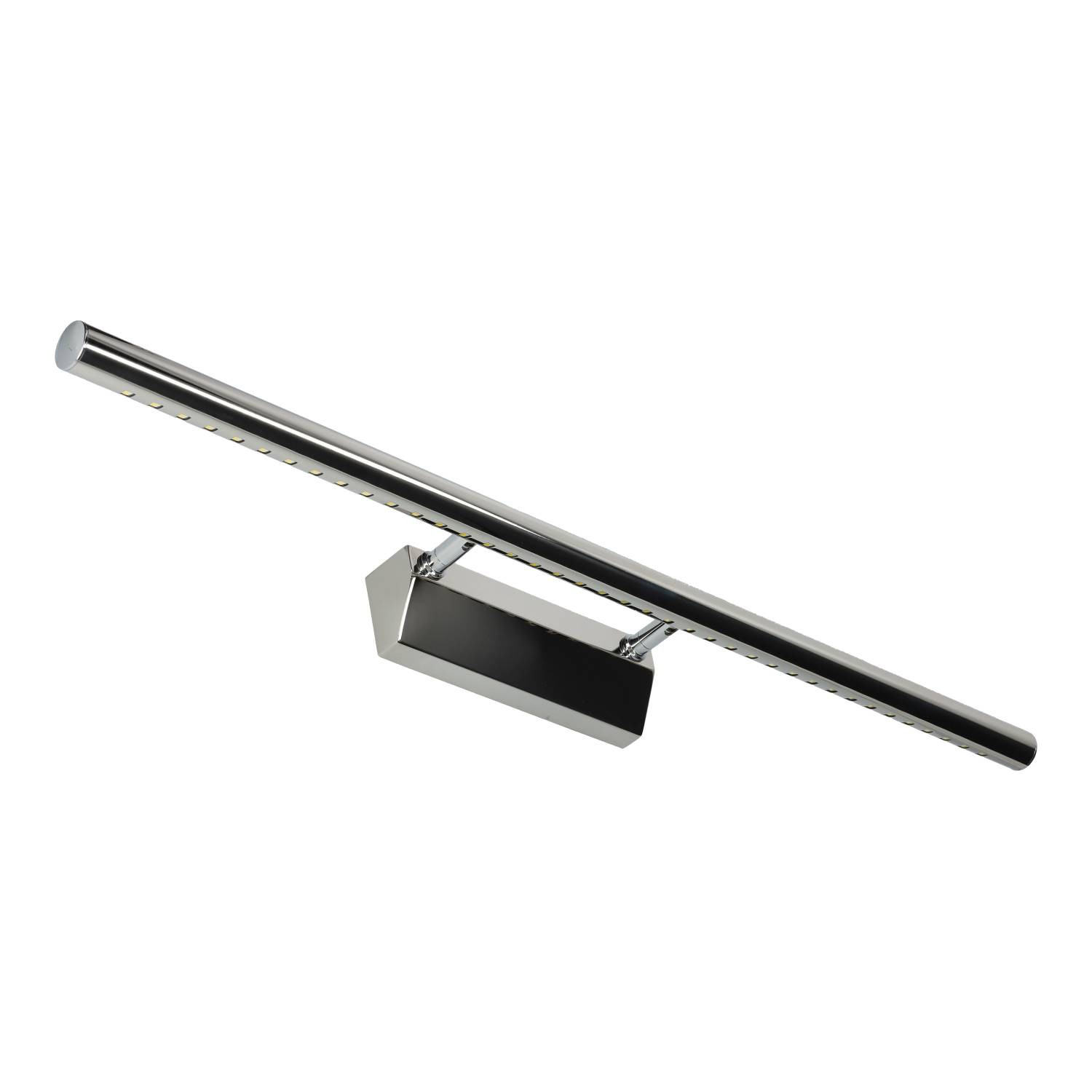 Aplique LED de aluminio de 9W, orientable.Su forma lo hace ideal para la iluminación de espejos, cuadros, tocadores, etc.Longitud: 69.5 cm.Incluye tornillos para el montaje.