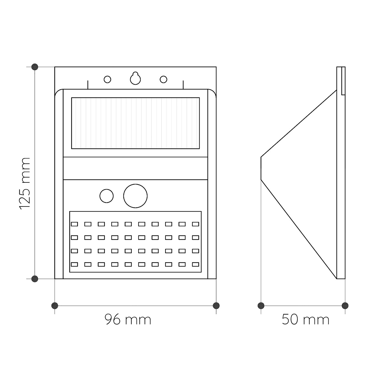 Aplique LED solar para instalación en superficie. Incorpora un detector de presencia con función nocturna que permite el encendido cuando detecta movimiento a una distancia de entre 3 y 5 metros. Para preservar la batería en períodos de inactividad, ésta viene desconectanada de fábrica. Para conectar o desconectar la batería, se debe accionar el botón de encendido que hay en la parte frontal del aplique. Ideal para su instalación en jardines, fachadas, terrazas, etc. Características principales: – Tiempo de carga de la batería: 8 horas. – Autonomía: 12 horas. El LED SMD que integra, logra proporcionar un flujo luminoso de 200 lumens. Este aplique tiene una dispersión lumínica de 120° y está disponible en una temperatura de color: blanca (6000°K). Está diseñado con las medidas de 125 x 96 x 50 mm. Está diseñado para ser instalado en exterior debido a su grado de protección IP65 (protección total frente al polvo y ante chorros de agua). Dispone de una garantía de 3 años. Cuenta también con el certificado CE, que acredita que se cumple con los requisitos de la UE respecto a compatibilidad electromagnética y normativa de baja tensión. Con este certificado se declara la conformidad de dicho producto con todos los requisitos legales exigidos, y asegura la validez del producto para ser vendido en todo el Espacio Económico Europeo. Incorpora tornillos para su instalación y manual de instrucciones. Sistema de iluminación solar avanzada con detector de presencia inteligente, este aplique se activa automáticamente cuando detecta movimiento dentro de un rango de 3 a 5 metros, proporcionando una iluminación brillante y eficiente. Fabricado en ABS resistente, con diseño compacto y protección IP65. Especial para instalaciones en paredes exteriores, jardines, entradas o fachadas. Durante el día, el panel solar integrado carga la batería interna, mientras que al anochecer, el aplique entra en funcionamiento automáticamente, maximizando la eficiencia energética. Además, su larga vida útil de 30,000 horas y autonomía de hasta 12 horas garantizan un rendimiento duradero y confiable. ✅ Tipo de luz y características – Tipo y cantidad de LED: Incorpora 12 LEDs SMD2835 de alta eficiencia. – Temperatura de color: Blanca 6000K , ideal para mayor visibilidad y seguridad. – Ángulo de apertura: 120º, proporcionando una cobertura amplia y uniforme. – Horas de vida: 30,000 horas, garantizando un rendimiento duradero. ✅ Tipo de panel solar y autonomía – Lúmenes: 200 lúmenes, suficientes para proporcionar una iluminación funcional y decorativa. – Panel solar: Carga la batería interna durante el día con solo 8 horas de exposición solar directa . – Autonomía: Hasta 12 horas de funcionamiento continuo , asegurando un rendimiento prolongado incluso en noches largas. ✅ Certificada y con garantía – Grado de protección IP65: Totalmente resistente al agua y al polvo, lo que la hace perfecta para uso en exteriores. – Certificaciones: Cumple con las normativas CE y RoHS, asegurando su seguridad y compatibilidad con estándares ecológicos. – Garantía: Ofrecemos una garantía de 3 años para respaldar la calidad y durabilidad del producto. ✅ Detector de presencia – Rango de detección: Detecta movimiento dentro de un rango de 3 a 5 metros , ideal para áreas como entradas, caminos o zonas de paso. – Función nocturna: Se activa automáticamente al detectar movimiento durante la noche. – Retardo: Vuelve al modo de reposo tras 20 segundos sin detectar actividad, ahorrando energía. Características principales del aplique solar led – Dimensiones: 125 x 96 x 50 mm – Lúmenes: 200 lm – Temperatura de color: Blanca 6000K – Ángulo de apertura: 120º – Tipo y cantidad de LED: 12 LEDs SMD2835 – Material: ABS resistente – Grado de protección: IP65 (resistente al agua y al polvo) – Horas de vida útil: 30,000 horas – Detector de presencia: Rango de detección de 3 a 5 metros – Retardo: Vuelve al modo de reposo tras 20 segundos sin detectar movimiento – Tiempo de carga: 8 horas bajo luz solar directa – Autonomía: Hasta 12 horas de funcionamiento continuo – Certificaciones: CE, RoHS – Garantía: 3 años – Instalación: Incluye tornillos para fijación en superficie. ¿Cómo se instala un aplique solar LED? La instalación de este aplique es rápida y sencilla: 1.- Fija el aplique en la pared utilizando los tornillos incluidos. 2.- Asegúrate de que el panel solar esté orientado hacia el sol para maximizar la carga. 3.- Activa la batería accionando el botón de encendido en la parte frontal del aplique. 4.- El aplique comenzará a cargarse automáticamente durante el día y se encenderá al anochecer. DUDAS SOBRE LOS APLIQUES SOLARES LED CON DETECCIÓN DE PRESENCIA ¿Qué hace que este aplique sea ideal para exteriores? Este aplique está diseñado específicamente para uso en exteriores gracias a su grado de protección IP65 , que lo hace resistente al agua y al polvo. Además, su diseño compacto y moderno se integra perfectamente en cualquier entorno exterior. ¿Cómo funciona el detector de presencia? El detector de presencia se activa automáticamente cuando detecta movimiento dentro de un rango de 3 a 5 metros . Después de 20 segundos sin detectar actividad , el aplique vuelve al modo de reposo, ahorrando energía. ¿Cuánto tiempo dura la batería cargada? La batería interna ofrece hasta 12 horas de autonomía después de una carga completa de 8 horas bajo luz solar directa. ¿Funciona en días nublados o lluviosos? Sí, el panel solar está diseñado para cargar la batería incluso en días con poca luz solar. Si hay varios días seguidos de mal tiempo, la batería tiene suficiente capacidad para mantener el aplique funcionando durante varias noches consecutivas. ¿Qué tipo de mantenimiento requiere? El mantenimiento es mínimo. Simplemente limpia ocasionalmente el panel solar para evitar acumulación de s