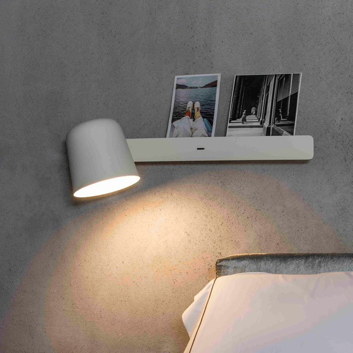 Aplique TILA de Faro Barcelona. Para dormitorios y zonas de lectura. Incorpora soporte para libros o revistas. Para bombillas E27 hasta 15 W.