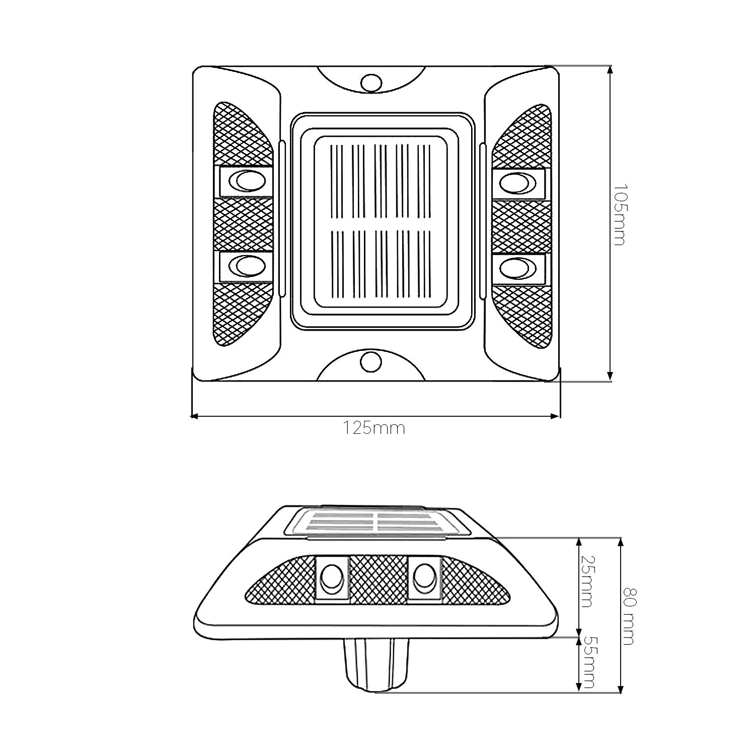 Baliza LED solar de aluminio, para instalación en suelo. Dispone de 3 leds a cada lado, con función de parpadeo en luz blanca. Los leds se alimentan mediante la batería interna de la baliza y se activan automáticamente al anochecer, con una frecuencia de parpadeo de 90 veces por minuto. Es ideal para su uso en carreteras, calles, rotondas, viales privados, jardines, etc. Cuenta con una alta eficacia mediante el LED SMD que integra, logrando proporcionar un flujo luminoso de 6 lumens. Características: – Panel Solar: 3V 90MA – Batería: 1.2V 1200mAh NiMH – Fuente de luz: 6PCS LED – Temperatura de color: blanca (6000K) – Autonomía: 18-20 horas – Tiempo de carga: 8-10 horas Posee un grado de protección IP65 (protección total frente al polvo y ante chorros de agua). Dispone de una garantía de 3 años. Cuenta también con el certificado CE, que acredita que se cumple con los requisitos de la UE respecto a compatibilidad electromagnética y normativa de baja tensión. Con este certificado se declara la conformidad de dicho producto con todos los requisitos legales exigidos, y asegura la validez del producto para ser vendido en todo el Espacio Económico Europeo. No incluye tornillos. La baliza solar empotrable de carretera LED es un tipo de iluminación LED de exterior para instalar en carreteras, calles, etc, que prioriza la seguridad y visibilidad nocturnas. Fabricada en aluminio resistente, esta baliza combina tecnología solar eficiente con un diseño empotrable que incluye bandas reflectoras blancas para garantizar visibilidad tanto de día como de noche. Equipada con 6 LEDs SMD ultra-brillantes, se activa automáticamente al anochecer y emite un parpadeo constante de 90 veces por minuto, captando la atención visual y mejorando la señalización en áreas críticas. ✅ Tipo de luz y características – Fuente de luz: Incorpora 6 LEDs SMD de alta eficiencia, con una temperatura de color de 6000K (blanca fría), ideal para señalización vial. – Función de parpadeo: Los LEDs emiten un parpadeo automático de 90 veces por minuto , maximizando la atención visual y mejorando la seguridad en áreas de tráfico. ✅ Tipo de panel solar y batería – Panel solar: Equipada con un panel solar de 3V 90mA , que carga la batería interna durante el día. – Batería: Incluye una batería recargable de 1.2V 600mAh NiMH , que ofrece una autonomía impresionante de 18-20 horas de funcionamiento continuo. – Tiempo de carga: Solo necesita 8-10 horas de exposición al sol para estar completamente cargada. ✅ Certificada y con garantía – Grado de protección IP65: Totalmente resistente al agua y al polvo, lo que la hace perfecta para uso en exteriores. – Certificaciones: Cumple con las normativas CE y RoHS, asegurando su seguridad y compatibilidad con estándares ecológicos. – Garantía: Ofrecemos una garantía de 3 años para respaldar la calidad y durabilidad del producto. ✅ Instalación – Fácil instalación: Sin necesidad de herramientas complejas ni conexiones eléctricas. Características Técnicas de la baliza solar LED Flash de carretera – Dimensiones: 125 x 105 x 25 mm – Material: Aluminio resistente – Cantidad de LEDs: 6 LEDs SMD (3 a cada lado) – Temperatura de color: 6000K (Blanca fría) – Modo de funcionamiento: Parpadeo automático de 90 veces por minuto – Panel solar: 3V 90mA (placa solar integrada) – Batería: 1.2V 1200mAh NiMH recargable – Autonomía: Hasta 18-20 horas de funcionamiento continuo – Tiempo de carga: 8-10 horas bajo luz solar directa – Grado de protección: IP65 (resistente al agua y al polvo) – Certificaciones: CE, RoHS – Garantía: 3 años – Activación: Automática al anochecer (sensor de luz integrado) – Apagado: Automático al amanecer ¿En qué sitios se puede utilizar esta baliza LED? Esta baliza solar empotrable de carretera es extremadamente versátil y puede utilizarse en una amplia gama de entornos: – Áreas urbanas: Perfecta para señalizar calles, rotonda , pasos peatonales o zonas de construcción. – Espacios privados: Ideal para delimitar caminos residenciales , jardines o entradas de garaje . – Zonas rurales: Funciona excepcionalmente bien en caminos forestales , carreteras secundarias o vías agrícolas . – Eventos temporales: Úsala en festivales , ferias o conciertos al aire libre para delimitar áreas clave. Dudas sobre las balizas solares led de carretera ¿Por qué elegir esta baliza frente a otras opciones? Esta baliza destaca por su diseño empotrable, fabricación en aluminio resistente y tecnología solar avanzada. Con 6 LEDs SMD ultra-brillantes y un parpadeo de 90 veces por minuto , ofrece una señalización clara y efectiva incluso en condiciones de baja visibilidad. Además, su grado de protección IP65 la hace ideal para uso en exteriores exigentes. ¿Qué diferencia el parpadeo de esta baliza de otras luces solares? El parpadeo de 90 veces por minuto está específicamente diseñado para captar la atención visual sin ser demasiado agresivo. Es perfecto para señalización vial, ya que alerta a conductores y peatones sin causar distracciones innecesarias. Este patrón ha sido probado para maximizar la visibilidad y la seguridad. ¿Es visible desde largas distancias? Sí, gracias a los 6 LEDs SMD de alta intensidad y la temperatura de color de 6000K (blanca fría) , esta baliza es altamente visible incluso desde largas distancias. El parpadeo constante asegura que sea fácilmente distinguible, incluso en áreas con iluminación artificial o condiciones climáticas adversas. ¿Funciona en días nublados o lluviosos? Sí, el panel solar de 3V 90mA está diseñado para cargar la batería incluso en días con poca luz solar. Si hay varios días seguidos de mal tiempo, la batería tiene suficiente capacidad para mantener la baliza funcionando durante varias noches consecutivas. ¿Qué tipo de mantenimiento requiere? El mantenimiento es mínimo. Simplemente limpia ocasionalm