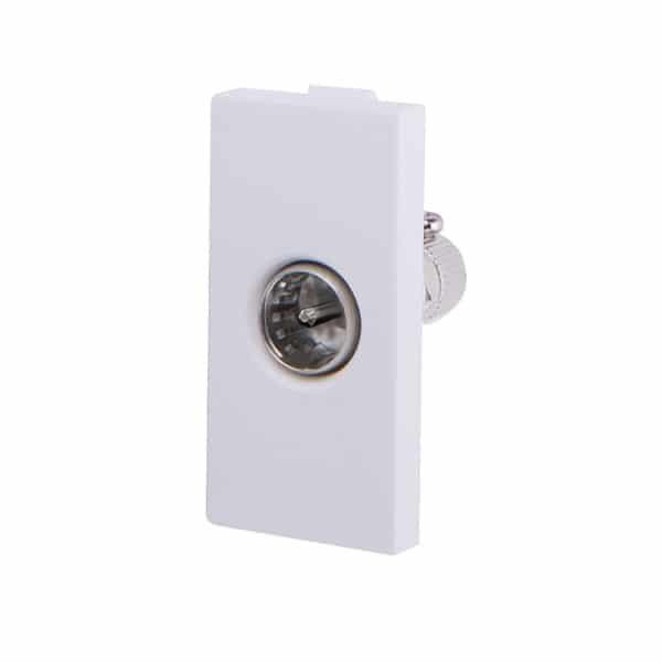 Base de medio elemento empotrable con toma de TV macho, disponible en dos colores: blanco o negro. Se puede combinar dentro de un mismo módulo con otros mecanismos modulares de la misma serie. Combinando este elemento con nuestros marcos de cristal obtendrá un resultado moderno y minimalista en cualquier estancia. Compatible con cajas de mecanismos universales y los marcos de la serie cristal. Mecanismo no compatible con los marcos de la serie PC. Está diseñado en policarbonato con las medidas 48 x 24 x 30 mm. Debido a su grado de protección IP20 es ideal para instalar en zonas interiores (protección contra partículas sólidas de tamaño superior a 12mm y no es resistente al agua). Dispone de una garantía de 3 años. Cuenta también con el certificado CE, que acredita que se cumple con los requisitos de la UE respecto a compatibilidad electromagnética y normativa de baja tensión. Con este certificado se declara la conformidad de dicho producto con todos los requisitos legales exigidos, y asegura la validez del producto para ser vendido en todo el Espacio Económico Europeo.