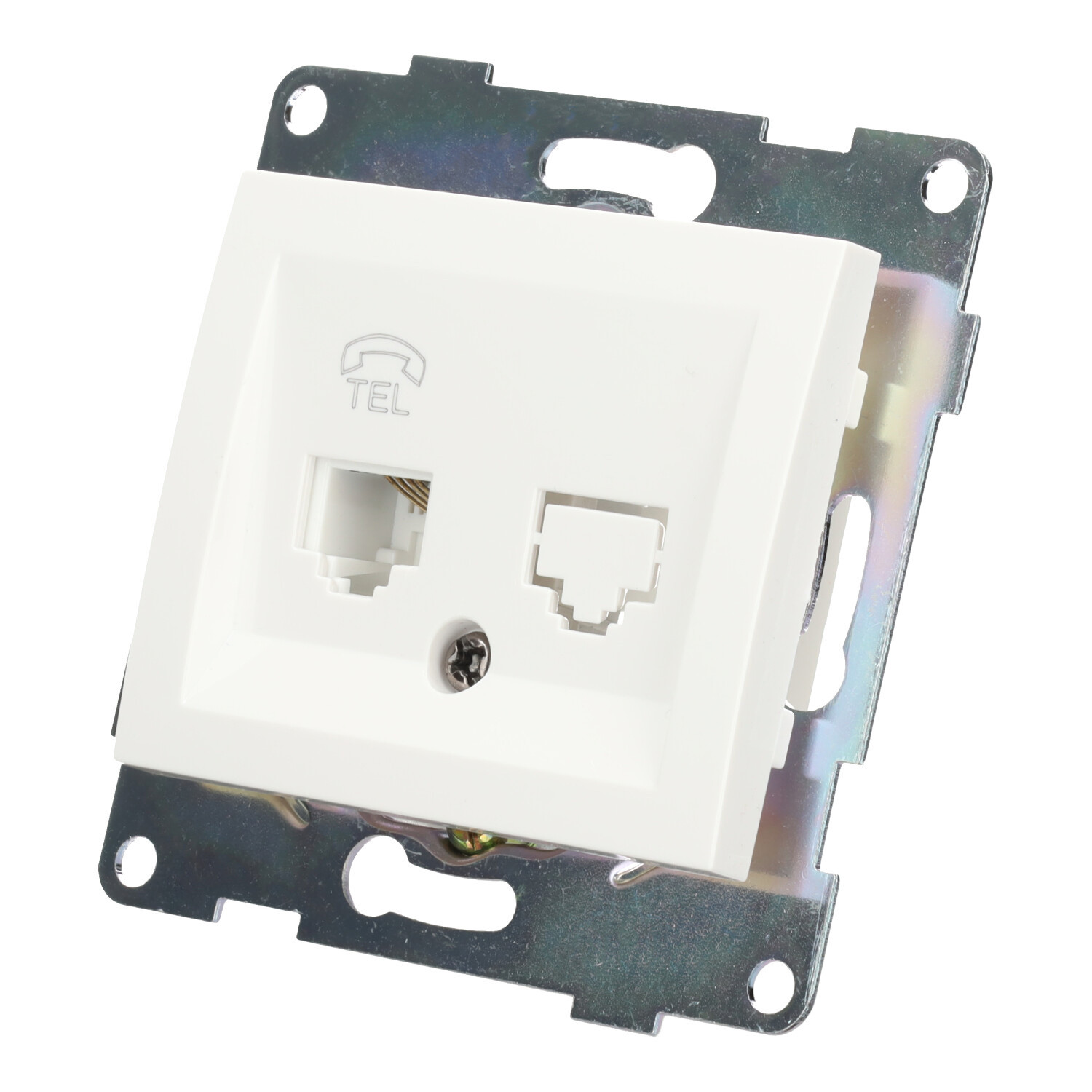 Base de un elemento empotrable con toma de teléfono (RJ11), disponible en tres colores diferentes: blanco, negro o plata. Cuenta además con una tapa ciega para instalación opcional de otra toma de teléfono o internet. Combinando esta base con nuestros marcos de la serie PC para mecanismos, se puede obtener una decoración moderna y minimalista en cualquier estancia dentro del hogar (pasillos, habitaciones, baños, salón o cocina), así como en hoteles, restaurantes, tiendas o centros comerciales. Compatible con cajas de mecanismos universales. No es compatible con marcos de la serie cristal. Está diseñado en policarbonato con las medidas 72 x 72 x 45 mm. Soporta un voltaje de entrada de 200-240V y una frecuencia de servicio de 50/60 Hz. Debido a su grado de protección IP20 es ideal para instalar en zonas interiores (protección contra partículas sólidas de tamaño superior a 12mm y no es resistente al agua). Dispone de una garantía de 3 años. Cuenta también con el certificado CE, que acredita que se cumple con los requisitos de la UE respecto a compatibilidad electromagnética y normativa de baja tensión. Con este certificado se declara la conformidad de dicho producto con todos los requisitos legales exigidos, y asegura la validez del producto para ser vendido en todo el Espacio Económico Europeo. Incluye bastidor. No incluye marco.