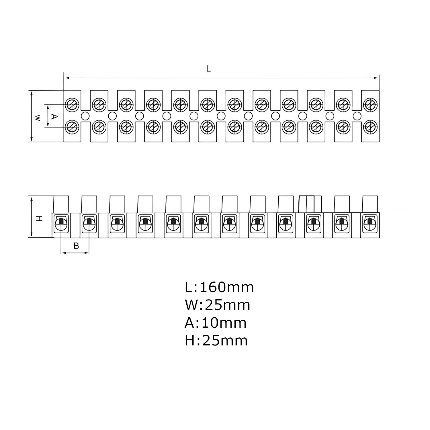 Regleta con clemas de conexión a tornillo, fabricada en poliamida flexible. Consta de 12 conectores aptos para cable rígido/flexible con sección desde 4 hasta 10mm² Este bloque de terminales es ideal para realizar conexiones y empalmes de cable con rapidez y seguridad, gracias a sus fijaciones mediante tornillo de cabeza plana. Características técnicas: – Número de vías: 12 – Sección de cable permitida: 4-10mm² – Intensidad máxima: 57A Debido a su grado de protección IP20 es ideal para instalar en zonas interiores (protección contra partículas sólidas de tamaño superior a 12mm y no es resistente al agua). Dispone de una garantía de 3 años. Cuenta también con el certificado CE, que acredita que se cumple con los requisitos de la UE respecto a compatibilidad electromagnética y normativa de baja tensión. Con este certificado se declara la conformidad de dicho producto con todos los requisitos legales exigidos, y asegura la validez del producto para ser vendido en todo el Espacio Económico Europeo.