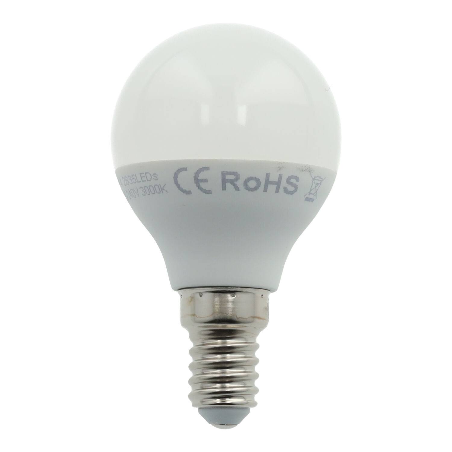 Bombilla Led Esfera 5W E14, tipo P45. Ideal para el hogar y comercios. Bombilla de 5W que equivale una bombilla incandescente de 40W.No se puede regular la intensidad de luz. Las bombillas LED consumen hasta un 85% menos de energía y duran 20 veces más que las bombillas incandescentes.
