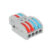 Conector rápido de dos entradas y cuatro salidas, fabricado en plástico de alta resistencia. Permite unir fácilmente cables desde 0,08 hasta 4 mm². Permite un voltaje de entrada de 100-265V y una intensidad de salida de 32A. Debido a su grado de protección IP20 es ideal para instalar en zonas interiores (protección contra partículas sólidas de tamaño superior a 12mm y no es resistente al agua). Dispone de una garantía de 3 años. Cuenta también con el certificado CE, que acredita que se cumple con los requisitos de la UE respecto a compatibilidad electromagnética y normativa de baja tensión. Con este certificado se declara la conformidad de dicho producto con todos los requisitos legales exigidos, y asegura la validez del producto para ser vendido en todo el Espacio Económico Europeo.
