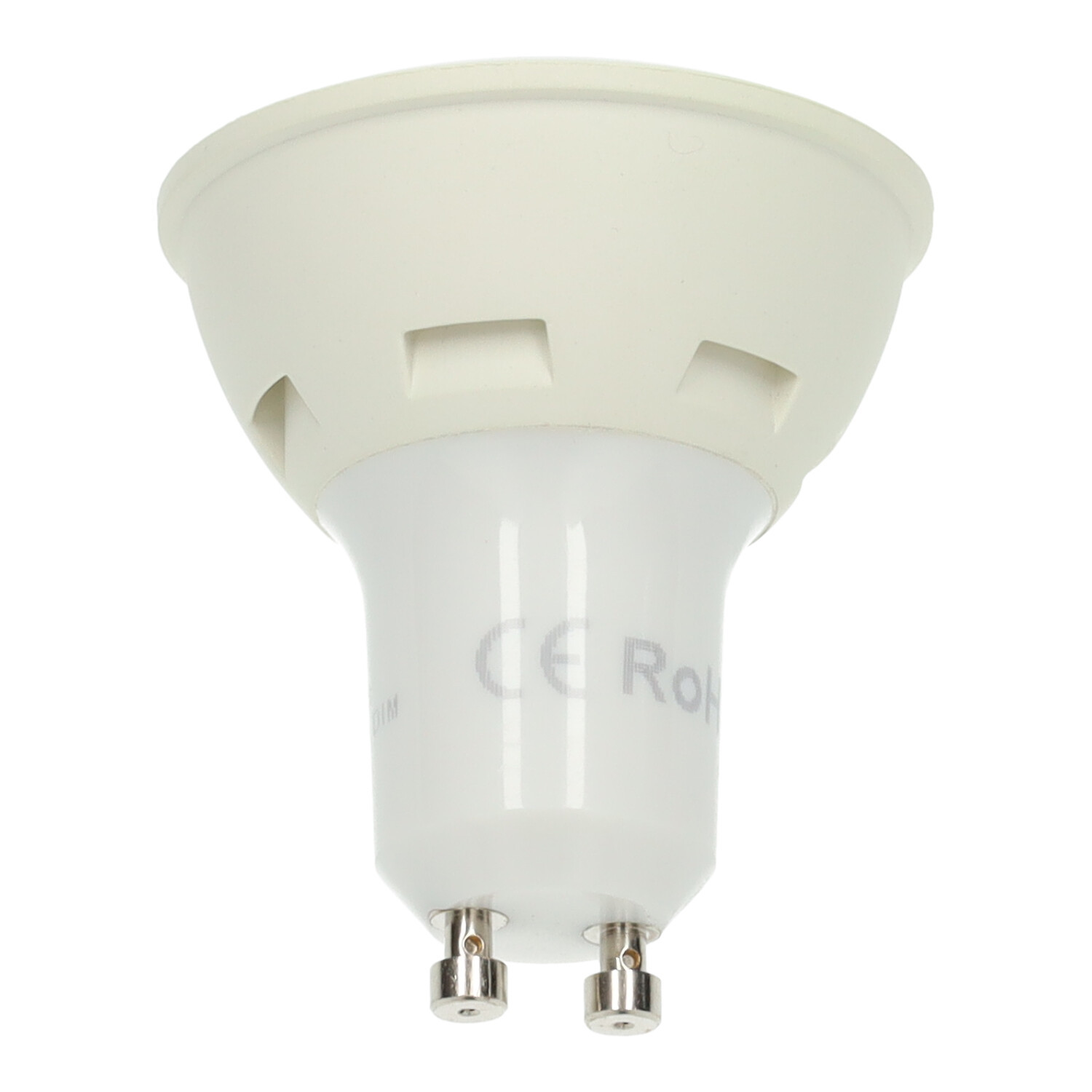La bombilla LED GU10 dicroica de 7W regulable, es una opción ideal para iluminar cualquier espacio de manera eficiente y económica. Esta bombilla es ideal para sustituir a los halógenos tradicionales de hasta 60W. Las bombillas LED consumen hasta un 85% menos de energía y duran 20 veces más que las bombillas incandescentes. Este tipo de bombilla permite regular la intensidad de la luz. Su instalación debe realizarse en lugares interiores al poseer un grado de protección IP20 (protección contra partículas sólidas de tamaño superior a 12 mm y no es resistente al agua). Es ideal para su uso dentro del hogar, restaurantes, tiendas, comercios, hoteles o centros comerciales. Los LEDs SMD que integra proporcionan un flujo luminoso de 700 lumens distribuidos uniformemente por un difusor de PVC, distribuyendo la luz en un ángulo de apertura de 40°. Posee unas dimensiones de ∅ 50 X 59 mm. Se instala en un casquillo del tipo GU10 conectado directamente a la toma de corriente (220/240V) con una frecuencia de servicio de 50/60 Hz. Está disponible en dos temperaturas de color, blanca (6000°K) y cálida (3000°K). Además de ser un producto que tiene más de 30.000 horas de vida, dispone de una garantía de 3 años. Cuenta también con el certificado CE, que acredita que se cumple con los requisitos de la UE respecto a compatibilidad electromagnética y normativa de baja tensión. Con este certificado se declara la conformidad de dicho producto con todos los requisitos legales exigidos, y asegura la validez del producto para ser vendido en todo el Espacio Económico Europeo.