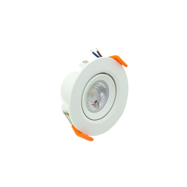 Downlight de LEDs redondo empotrable con acabado en color blanco, es uno de los productos más utilizados en iluminación ya que es ideal para su instalación en techos, tanto si cuentan con poco o mucho espacio. Debido a su ángulo de dispersión lumínica de 40° y su estructura basculante, lo hace ideal como fuente de iluminación para uso residencial (pasillos, zonas de entrada, armarios, salones, dormitorios, baños o cocinas) y espacios más amplios como oficinas, tiendas, hoteles, bares, restaurantes o supermercados. No permite regular la intensidad de luz La tecnología LED presenta un menor consumo en comparación con los downlight halógenos convencionales, permitiendo ahorrar cada mes en la factura de la luz. Cuenta con una alta eficacia al consumir 3W mediante el LED SMD que integra, logrando proporcionar un flujo luminoso de 255 lumens. La iluminación que aporta representa un consumo por valor de 3kWh/1000h, lo que supone una reducción de la cantidad de energía facturada y de emisiones de gases contaminantes a la atmósfera. Este downlight está disponible en tres temperaturas de color: blanca (6000°K), neutra (4000°K) y cálida (3000°K). Su instalación debe realizarse en lugares interiores al poseer un grado de protección IP20 (protección contra partículas sólidas de tamaño superior a 12 mm y no es resistente al agua). Soporta un voltaje de entrada de 200 a 240V y una frecuencia de servicio de 50 Hz. A la hora de realizar el montaje de cualquier downlight es primorcial tener en cuenta tres dimensiones. En primer lugar, el espesor del downlight (44 mm), por otro lado el diámetro de corte (55 mm) que debe ser igual o menor al agujero del techo, y por último el diámetro externo del downlight (70 mm) que tiene que ser mayor al diámetro del agujero. Además de ser un producto que tiene más de 30.000 horas de vida, dispone de una garantía de 3 años. Cuenta también con el certificado CE, que acredita que se cumple con los requisitos de la UE respecto a compatibilidad electromagnética y normativa de baja tensión. Con este certificado se declara la conformidad de dicho producto con todos los requisitos legales exigidos, y asegura la validez del producto para ser vendido en todo el Espacio Económico Europeo. Incluye driver