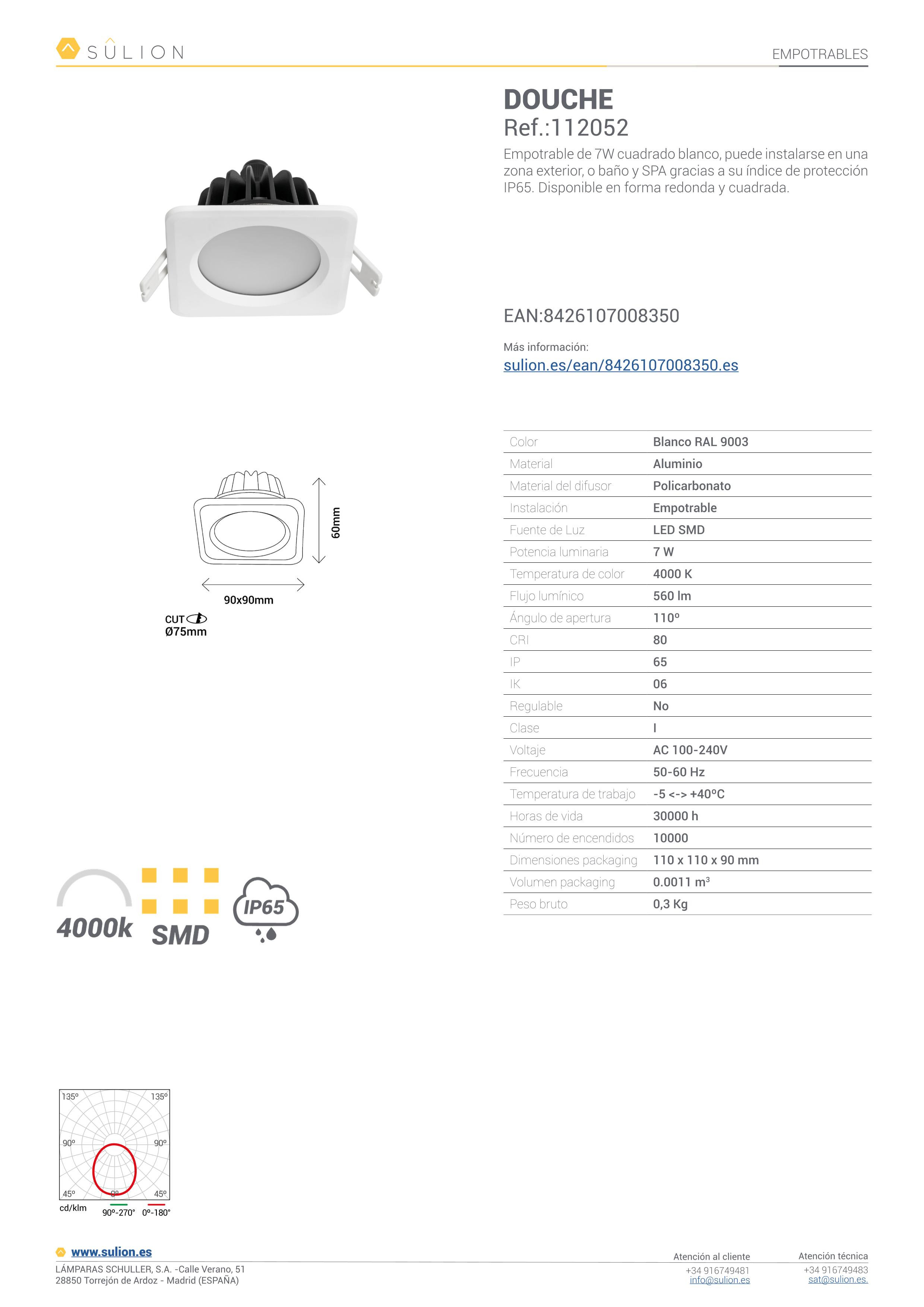 Downlight LED DOUCHE 7W cuadrado de Sulion