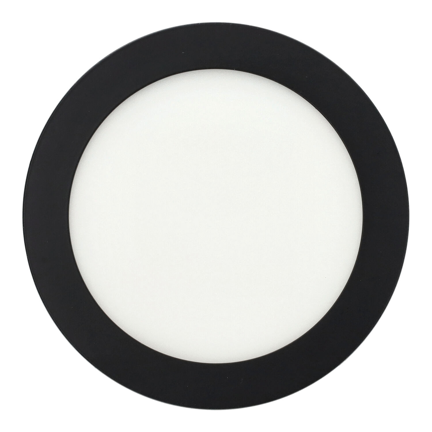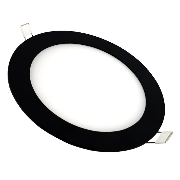 Downlight de LEDs redondo extraplano empotrable de 12W con acabado en color negro, es uno de los productos más utilizados en iluminación ya que es ideal para su instalación en techos, tanto si cuentan con poco o mucho espacio. Debido a su ángulo de dispersión lumínica de 120° lo hace ideal como fuente de iluminación para uso residencial (pasillos, zonas de entrada, salones, dormitorios, baños o cocinas) y espacios más amplios como oficinas, tiendas, hoteles, bares, restaurantes o supermercados. También disponible en versión regulable, adquiriendo el driver regulable. Están diseñados con un grosor ultraplano para poder instalarlos en techos de poca altura. La tecnología LED presenta un menor consumo en comparación con los downlight halógenos convencionales, permitiendo ahorrar cada mes en la factura de la luz. Para evitar daños en el driver o en la luminaria, se debe realizar la instalación sin tensión en la red eléctrica. Nunca conecte un panel a un driver cuando dicho driver tenga tensión eléctrica. Cuenta con una alta eficacia al consumir 12W mediante el LED SMD2835 60 leds que integra, logrando proporcionar un flujo luminoso de 1080 lumens. La iluminación que aporta representa un consumo por valor de 12kWh/1000h, lo que supone una reducción de la cantidad de energía facturada y de emisiones de gases contaminantes a la atmósfera. Este downlight está disponible en tres temperaturas de color: blanca (6000°K), neutra (4000°K) y cálida (3000°K). Su instalación debe realizarse en lugares interiores al poseer un grado de protección IP20 (protección contra partículas sólidas de tamaño superior a 12mm y no es resistente al agua). Soporta un voltaje de entrada de 220V y una frecuencia de servicio de 50/60 Hz. A la hora de realizar el montaje de cualquier downlight es primordial tener en cuenta tres dimensiones. En primer lugar, el espesor del downlight (14 mm), por otro lado el diámetro de corte (155 mm) que debe ser igual o menor al agujero del techo, y por último el diámetro externo del downlight (170 mm) que tiene que ser mayor al diámetro del agujero. Además de ser un producto que tiene más de 30.000 horas de vida, dispone de una garantía de 3 años. Cuenta también con el certificado CE, que acredita que se cumple con los requisitos de la UE respecto a compatibilidad electromagnética y normativa de baja tensión. Con este certificado se declara la conformidad de dicho producto con todos los requisitos legales exigidos, y asegura la validez del producto para ser vendido en todo el Espacio Económico Europeo. Incluye driver