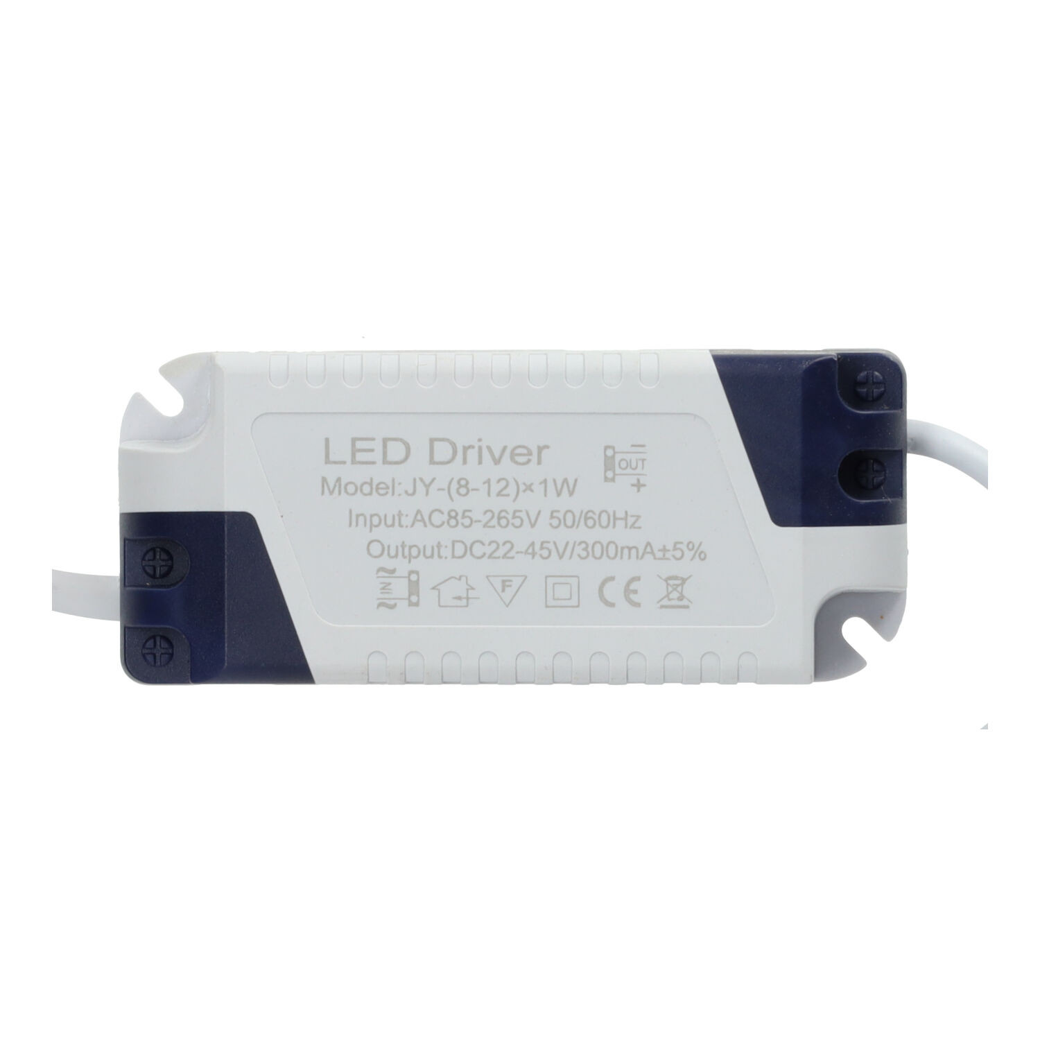 La fuente de alimentación driver de corriente constante es compatible con el panel LED de 8W a 12W. Este dispositivo adecúa la tensión de red a los parámetros adecuados para los downlight led, su caja de PVC protege de posibles daños causados por el agua y el polvo. El objetivo de los drivers es el uso de transformadores electrónicos, ahorro de energía LED económica y ecológica. Para evitar daños en el driver o en la luminaria, se debe realizar la instalación sin tensión en la red eléctrica. Nunca conecte un panel a un driver cuando dicho driver tenga tensión eléctrica. Su instalación debe realizarse en lugares interiores al poseer un grado de protección IP20 (protección contra partículas sólidas de tamaño superior a 12mm y no es resistente al agua). Soporta un voltaje de entrada de 85-265V y una frecuencia de servicio de 50/60 Hz. Está diseñado con las medidas de 68 x 33 x 22 mm. Además de ser un producto que tiene más de 30.000 horas de vida, dispone de una garantía de 3 años. Cuenta también con el certificado CE, que acredita que se cumple con los requisitos de la UE respecto a compatibilidad electromagnética y normativa de baja tensión. Con este certificado se declara la conformidad de dicho producto con todos los requisitos legales exigidos, y asegura la validez del producto para ser vendido en todo el Espacio Económico Europeo.