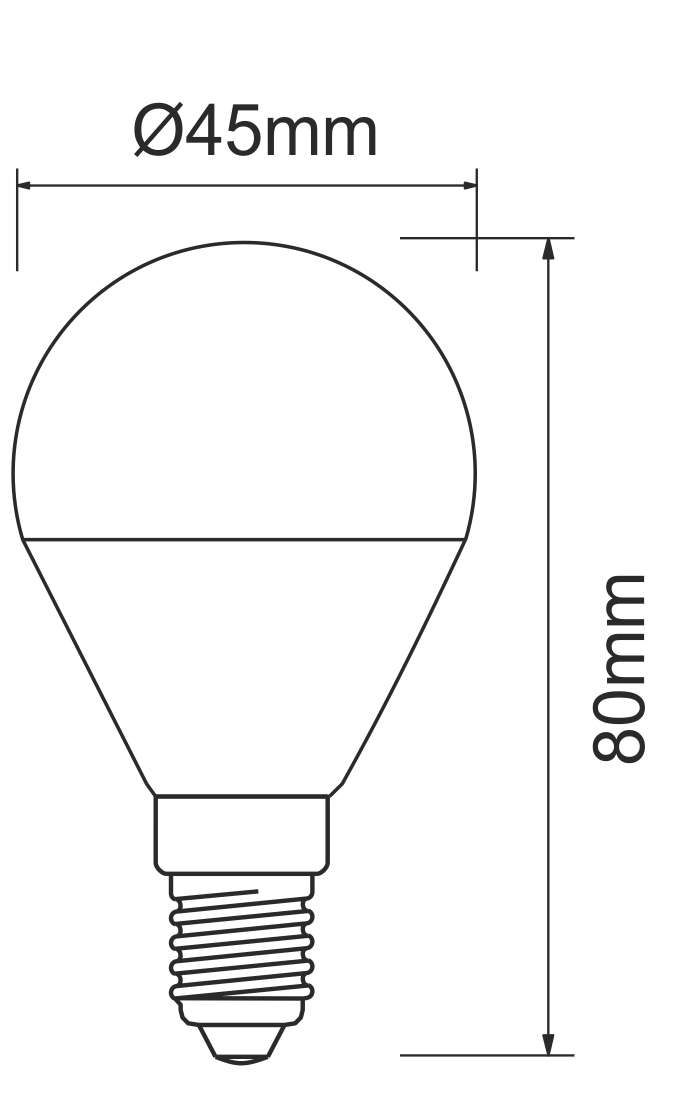 Bombilla esférica LED 5W de Beneito Faure. Pequeña y versátil, para apliques y lámparas de techo y de mesa. Apta para iluminación profesional.