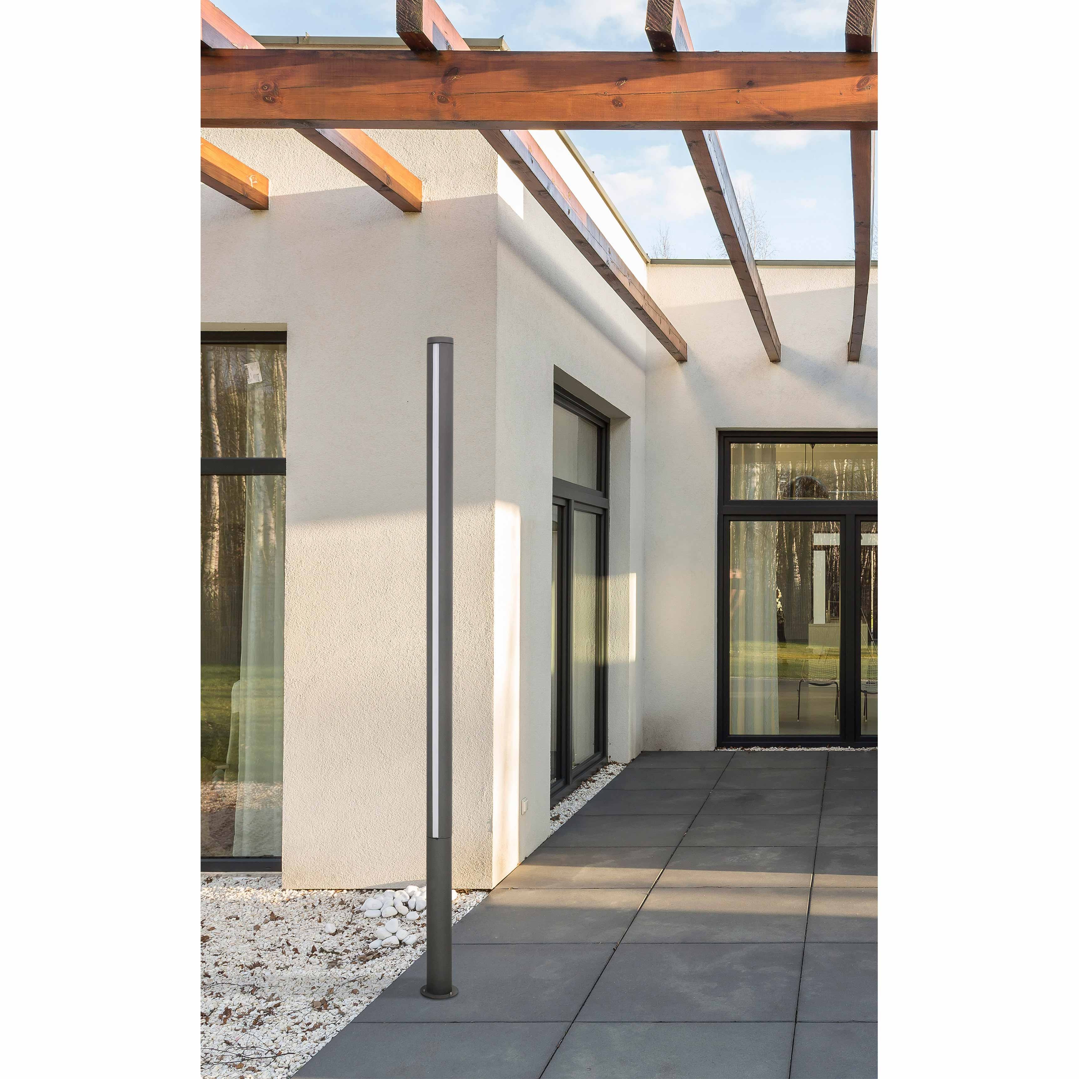 La serie Grop de Faro es una decoración exterior refinada y de líneas minimalistas. La farola Grop tiene una altura de 2 metros y es perfecta para una iluminación ornamental de jardines y exteriores.