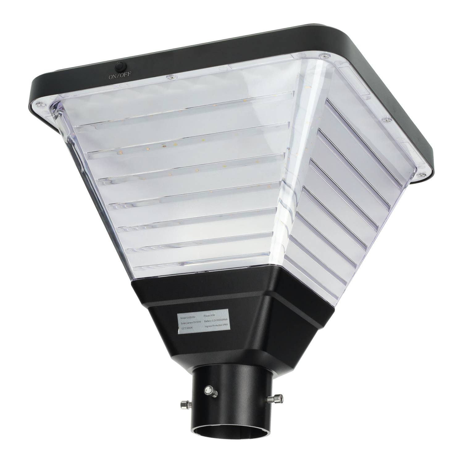 Diseñada específicamente para entornos residenciales, urbanizaciones o zonas que buscan un estilo más elegante y decorativo. Tiene una autonomía de hasta 20 horas tras solo 4-5 horas de exposición solar directa. No requiere electricidad por lo que se ahorra en costes de luz y la instalación en mucho más fácil. ✅ Tipo de luz y características – Tipo de LED: Incorpora LED SMD de alta eficiencia, diseñados para maximizar la durabilidad y el rendimiento. – Temperatura de color: Cálida (3000-3500K) , ideal para crear un ambiente acogedor y cálido. – Ángulo de apertura: 120º , proporciona una cobertura amplia y homogénea, ideal para resaltar áreas específicas. ✅ Tipo de panel solar y autonomía – Potencia: 10W, suficiente para proporcionar una iluminación funcional y decorativa. – Lúmenes: 600 lúmenes , garantizando una iluminación brillante y uniforme. – Panel solar: Carga la batería interna durante el día con solo 4-5 horas de exposición solar directa . – Autonomía: Hasta 20 horas de funcionamiento continuo , asegurando un rendimiento prolongado incluso en noches largas. ✅ Dimensiones y materiales – Dimensiones: 400 x 400 x 435 mm, compacta pero funcional. – Material: Fabricada en aluminio y policarbonato resistente , ligera pero duradera. – Color: Modelo negro, perfecto para integrarse discretamente en cualquier entorno exterior. – Grado de protección IP65: Totalmente resistente al agua, al polvo y a la corrosión, lo que la hace ideal para uso en exteriores bajo cualquier condición climática, incluso en zonas costeras. Características Técnicas de la Farola villa solar 10W cuadrada: – Dimensiones: 400 x 400 x 435 mm – Potencia: 10W – Lúmenes: 600 lm – Temperatura de color: Cálida 3000-3500K – Ángulo de apertura: 120º – Tipo de LED: SMD – Material: Aluminio y policarbonato resistente – Color del producto: Negro – Grado de protección: IP65 (resistente al agua, al polvo y a la corrosión) – Horas de vida útil: 30,000 horas – Certificaciones: CE, RoHS – Garantía: 3 años – Tiempo de carga: 4-5 horas bajo luz solar directa – Autonomía: Hasta 20 horas de funcionamiento continuo – Altura de instalación recomendada: 2-3 metros – Diámetro máximo de poste compatible: 78 mm ¿Qué es una farola villa? Una farola villa es un tipo de iluminación exterior diseñada específicamente para entornos residenciales, urbanizaciones o zonas que buscan un estilo más elegante y decorativo. A diferencia de las farolas tradicionales, que suelen ser más altas y funcionales, las farolas villa tienen un diseño compacto y estético, lo que las hace ideales para integrarse en espacios donde se busca combinar funcionalidad con un toque de distinción. ¿Cómo se instala una farola villa? 1.- Fijación en poste: Usa los tornillos incluidos para fijar la farola en postes de hasta 78 mm de diámetro . 2.- Asegúrate de que el panel solar esté orientado hacia el sol para maximizar la captación de energía. 3.- La farola comenzará a cargarse automáticamente durante el día y se encenderá al anochecer. DUDAS SOBRE LAS FAROLAS VILLA SOLARES LED ¿Cuántas farolas tengo que comprar para iluminar una calle? Depende del largo de la calle y de la distancia entre las farolas. Para una iluminación uniforme, recomendamos instalar una Farola Villa Solar 10W Cuadrada cada 5 a 8 metros . Por ejemplo: – Para una calle de 20 metros , necesitarías unas 4 farolas. – Para una calle de 50 metros , necesitarías aproximadamente 7 a 10 farolas. Esto asegurará una cobertura completa sin sombras excesivas. ¿A qué altura de poste hay que instalarlas? La altura recomendada para instalar esta farola es entre 2 y 3 metros . Esta altura es ideal para maximizar la iluminación hacia el suelo, reducir la contaminación lumínica y garantizar una cobertura uniforme. Además, la farola está diseñada para adaptarse a postes de hasta 78 mm de diámetro , lo que facilita su instalación en una variedad de estructuras. ¿Funciona bien en climas adversos? ¡Por supuesto! La Farola Villa Solar 10W Cuadrada está diseñada para soportar condiciones climáticas extremas. Su grado de protección IP65 la hace completamente resistente al agua, al polvo y a la corrosión, lo que permite su instalación en zonas lluviosas, ventosas o incluso costeras. Además, incluye un tratamiento anticorrosión que garantiza su durabilidad. ¿Qué ventajas tiene frente a otras farolas solares? Esta farola destaca por su diseño moderno y compacto, ideal para espacios residenciales y comerciales. Además, su luz cálida (3000-3500K) y su ángulo de apertura de 120º proporcionan una iluminación amplia y acogedora. También es respetuosa con el medio ambiente y te ayuda a ahorrar en costos de electricidad. ¿Qué incluye el paquete al comprar esta farola? El paquete incluye: – Farola Villa Solar 10W Cuadrada. – Tornillos para fijación en poste. – Manual de instrucciones.