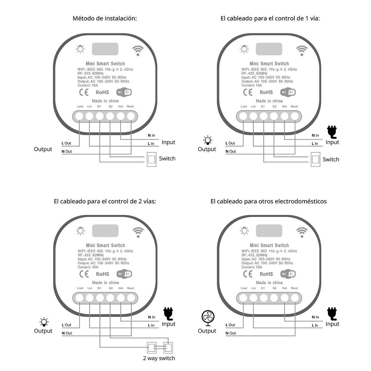 Interruptor de pastilla Wifi + RF para una potencia máxima de 400W, para diferentes tipos de iluminación LED (bombillas, lámparas dicroicas, downlight, paneles, etc). También es compatible con luminarias convencionales u otros aparatos eléctricos con una potencia máxima de hasta 3600W. Este dispositivo permite domotizar nuestro hogar conservando los interruptores ya existentes. De este modo, el control de la iluminación se puede hacer de la forma tradicional mediante los interruptores, o bien mediante nuestro smartphone. También es compatible con asistentes virtuales, como por ejemplo Google Home o Amazon Alexa. También es compatible con mandos RF de 433MHz (ver accesorios y relacionados). Entrada con terminales de tornillo, tamaño reducido para poder instalarlo en una caja de pared estándar. Está diseñado en PVC con las medidas de 47 x 47 x 20 mm. Soporta un voltaje de entrada de 220-240V y una frecuencia de servicio de 50 Hz. Debido a su grado de protección IP20 es ideal para instalar en zonas interiores (protección contra partículas sólidas de tamaño superior a 12mm y no es resistente al agua). Dispone de una garantía de 3 años. Cuenta también con el certificado CE, que acredita que se cumple con los requisitos de la UE respecto a compatibilidad electromagnética y normativa de baja tensión. Con este certificado se declara la conformidad de dicho producto con todos los requisitos legales exigidos, y asegura la validez del producto para ser vendido en todo el Espacio Económico Europeo. Incluye manual de instrucciones.